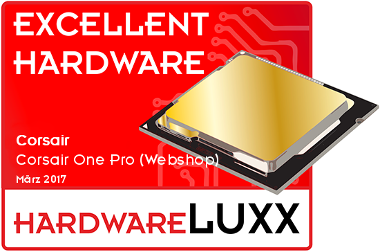 Das Corsair One Pro ist ein Komplettrechner der besonderen Art mit einer sehr hohen Performance, einem guten Geräusch-Verhalten und einem schicken, zeitlosen Design. Wir zücken daher unseren Excellent-Hardware-Award. Herzlichen Glückwunsch!