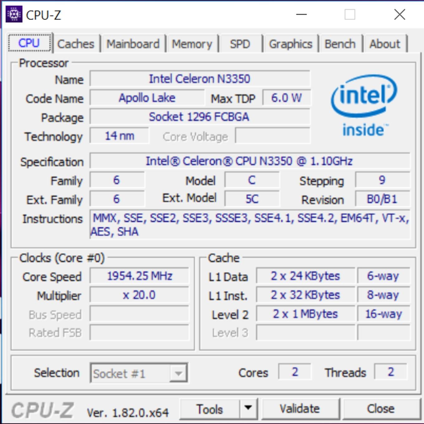Herzstück unseres Liva Q ist ein Intel Celeron N3350. Der SoC wurde bereits im dritten Quartal 2016 vorgestellt und entspringt der Apollo-Lake-Familie, welche im 14-nm-Verfahren vom Band läuft und vor allem auf Effizienz und Sparsamkeit getrimmt wurde. Dabei stehen dem SoC zwei Rechenkerne zur Verfügung, die sich mit einem Basis- und Turbo-Takt von 1,1 bis 2,4 GHz ans Werk machen. Apollo Lake gilt als Nachfolger der Atom-Plattform, wurde vor allem aber bei der Pro-MHz-Leistung deutlich verbessert und soll nun auch mit hochauflösendem Videomaterial keine Probleme mehr haben.