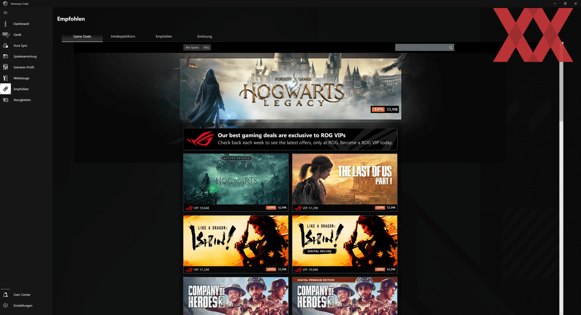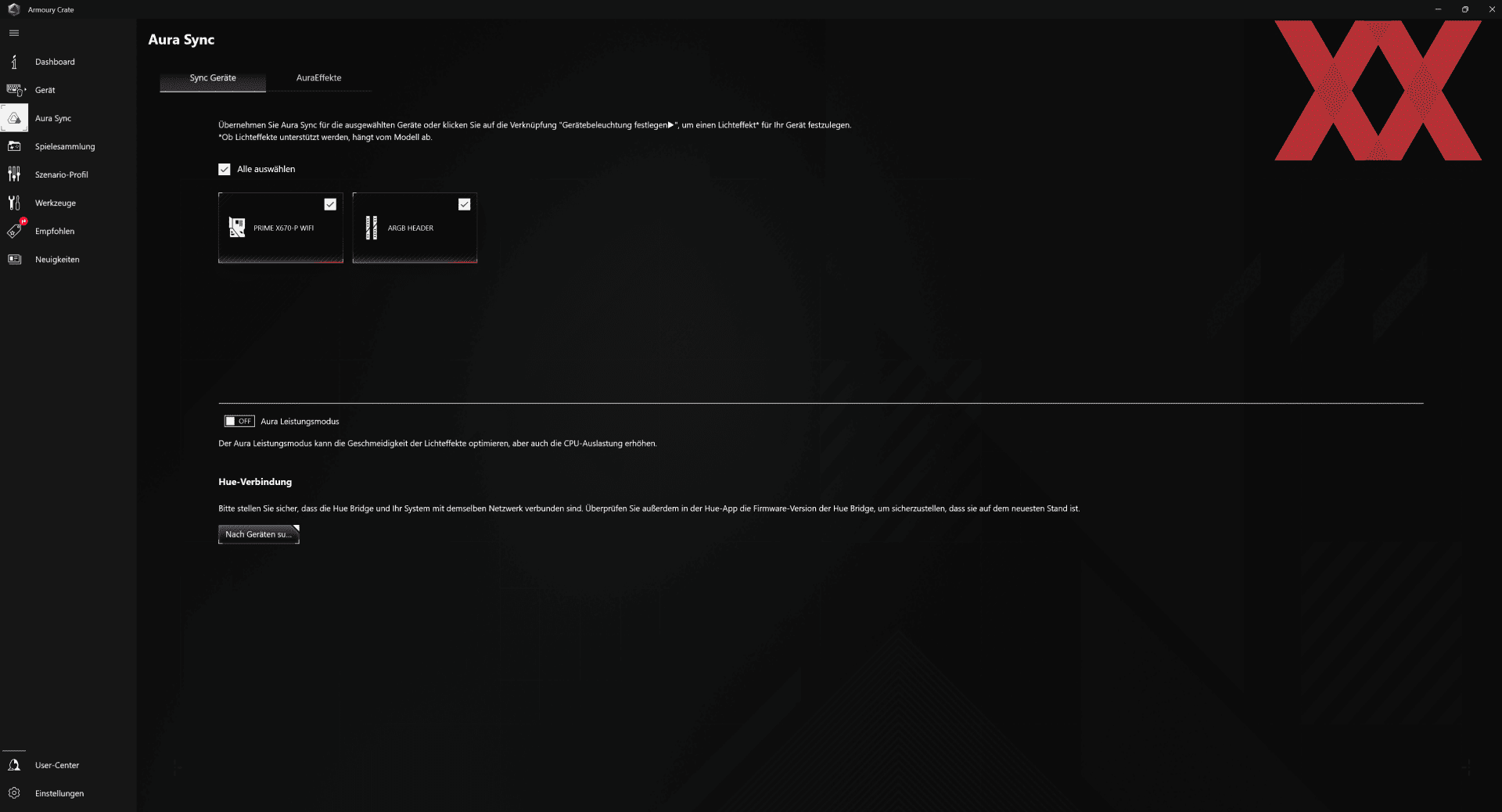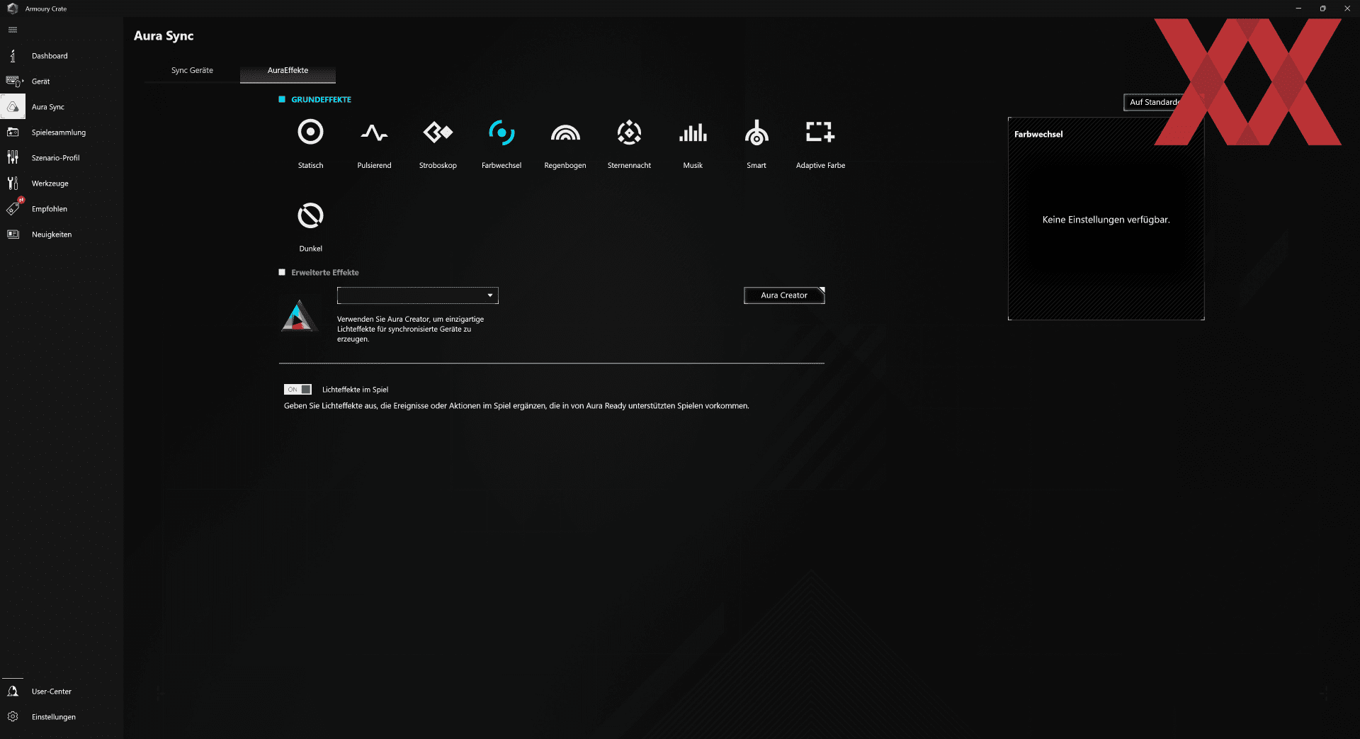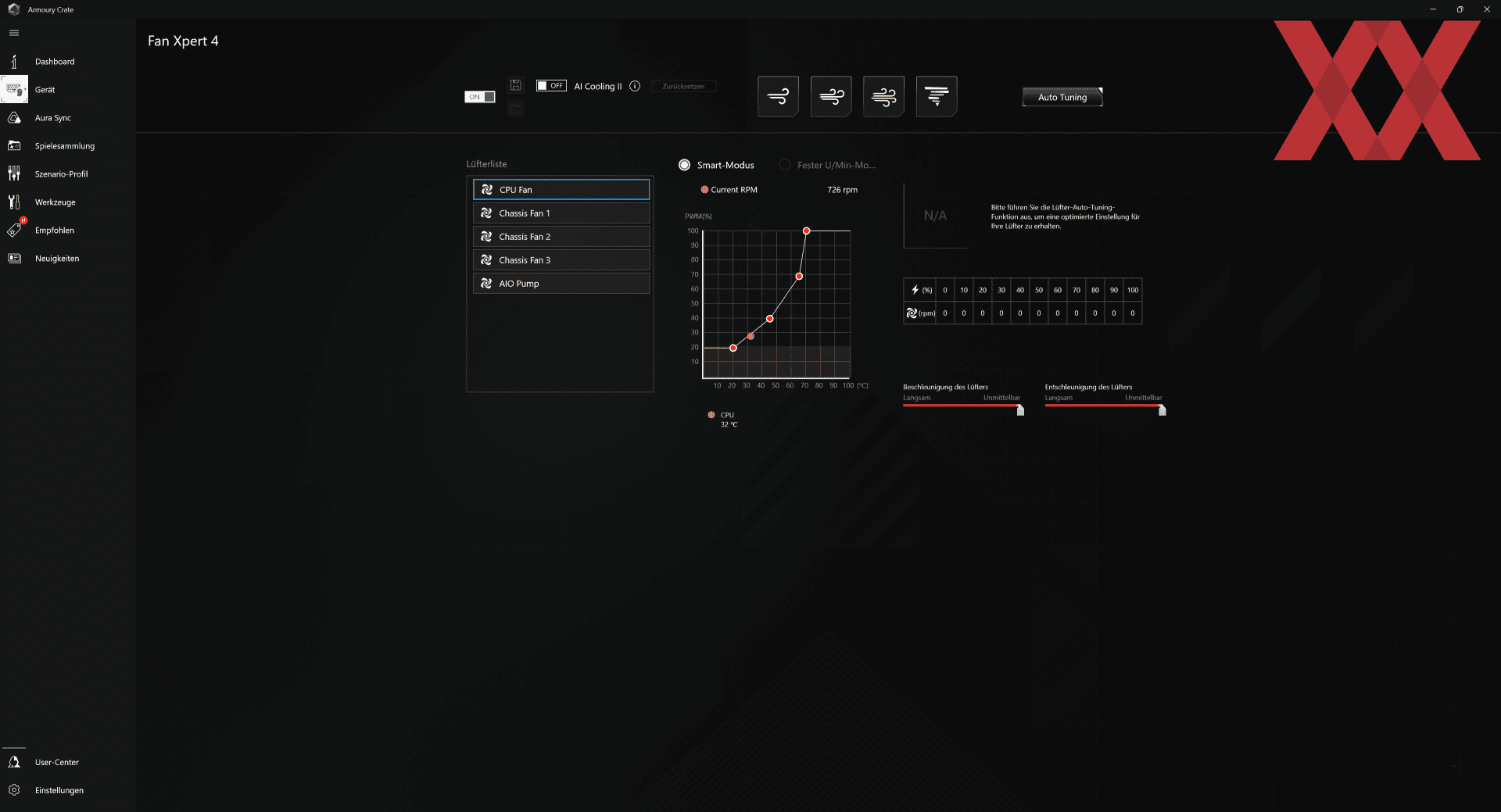Was die Software anbelangt, so hat PCSpecialist Windows 11 Home vorinstalliert. Mit dabei ist aber auch eine Demoversion einer Sicherheitssoftware von Norton Security, welche zeitlich beschränkt ist. Ansonsten ist das Betriebssystem recht sauber. Direkt nach dem ersten Start und dem Herstellen der Internetverbindung wird erkannt, dass eine ASUS-Mainboard im Inneren steckt und dessen Software wird nachinstalliert. Damit lassen sich dann das Beleuchtungssystem der angeschlossenen Lüfter konfigurieren, aber auch wichtige Systemparameter wie die Temperatur von Prozessor und Grafikkarte sowie deren Auslastungswerte auslesen.