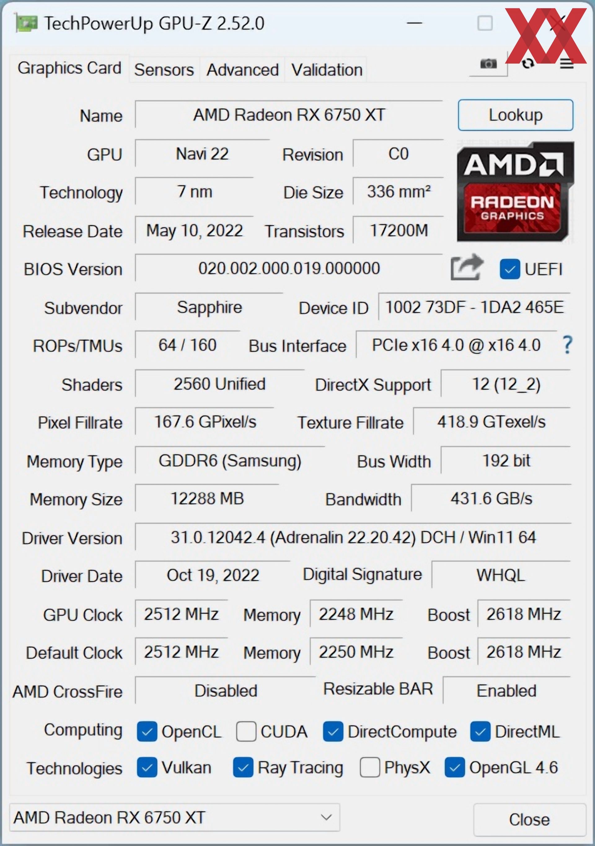 Für Spieler am interessantesten dürfte die Grafikkarte sein. Hier hat PCSpecialist ebenfalls zu einem Modell der Mittelklasse gegriffen und sich für eine AMD Radeon RX 6750 XT entschieden. Sie basiert auf der Navi-22-GPU, die bereits im fortschrittlichen 7-nm-Prozess vom Band läuft und etwa 17,2 Milliarden Transistoren unterhält. Zur Verfügung stehen insgesamt 40 Compute-Units der RDNA2-Architektur und damit 2.560 Shadereinheiten und 40 RT-Beschleuniger für Raytracing-Inhalte. Der Videospeicher umfasst 12 GB und setzt sich aus schnellen GDDR6-Chips zusammen, die über einen 192 Bit breiten Datenbus angeschlossen sind.