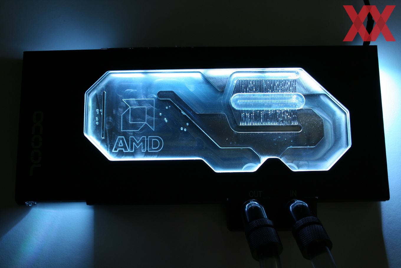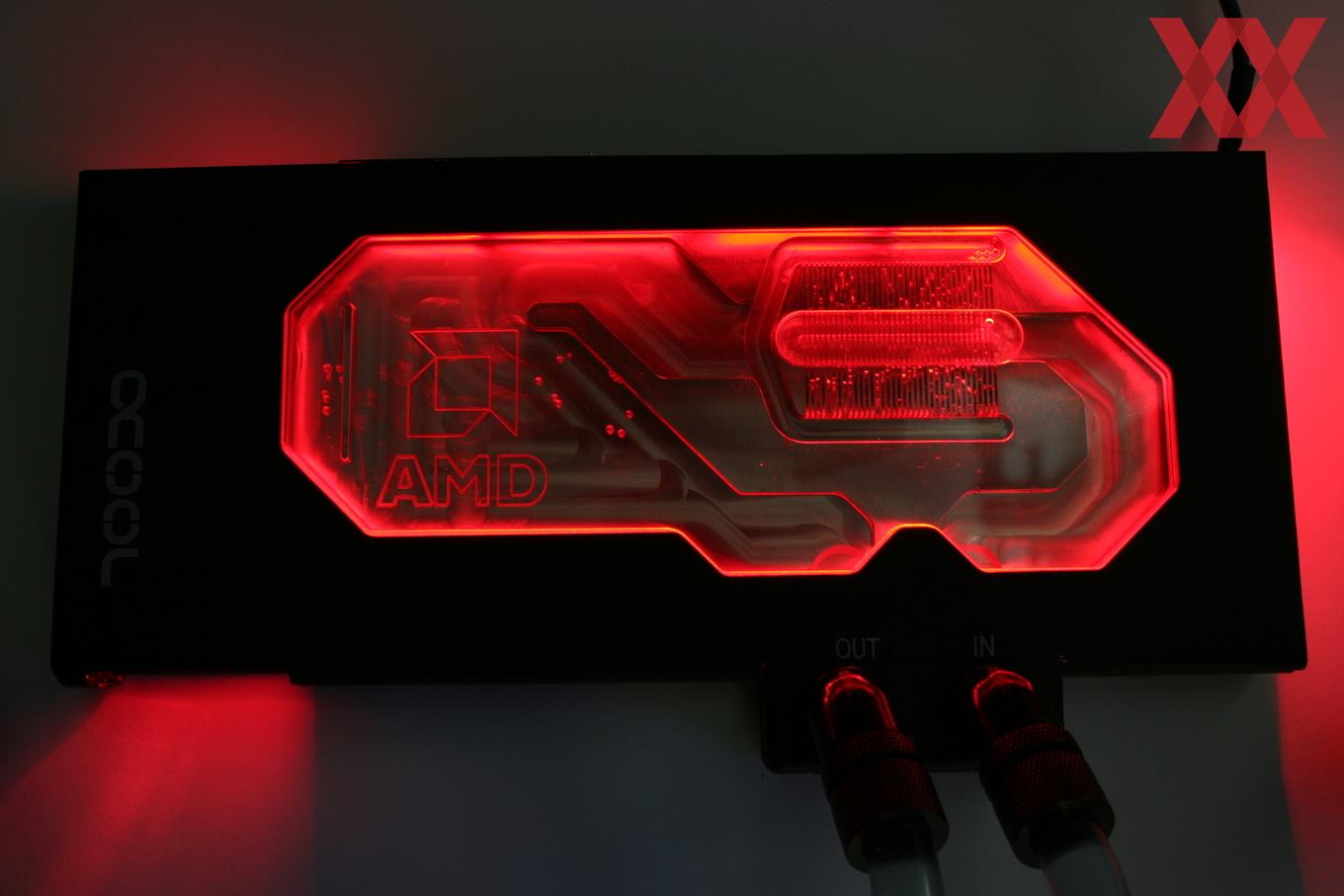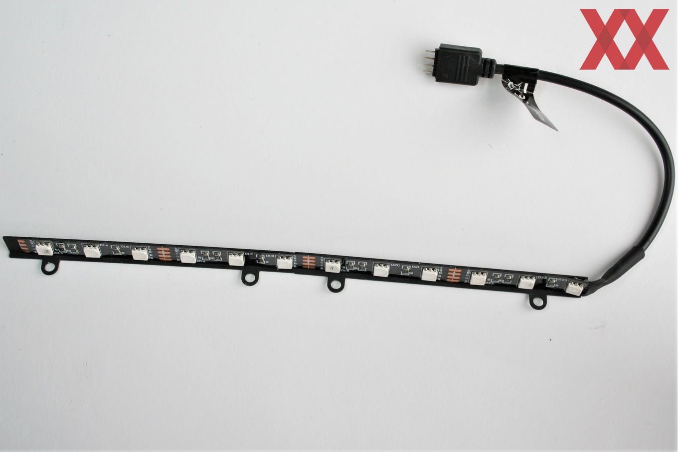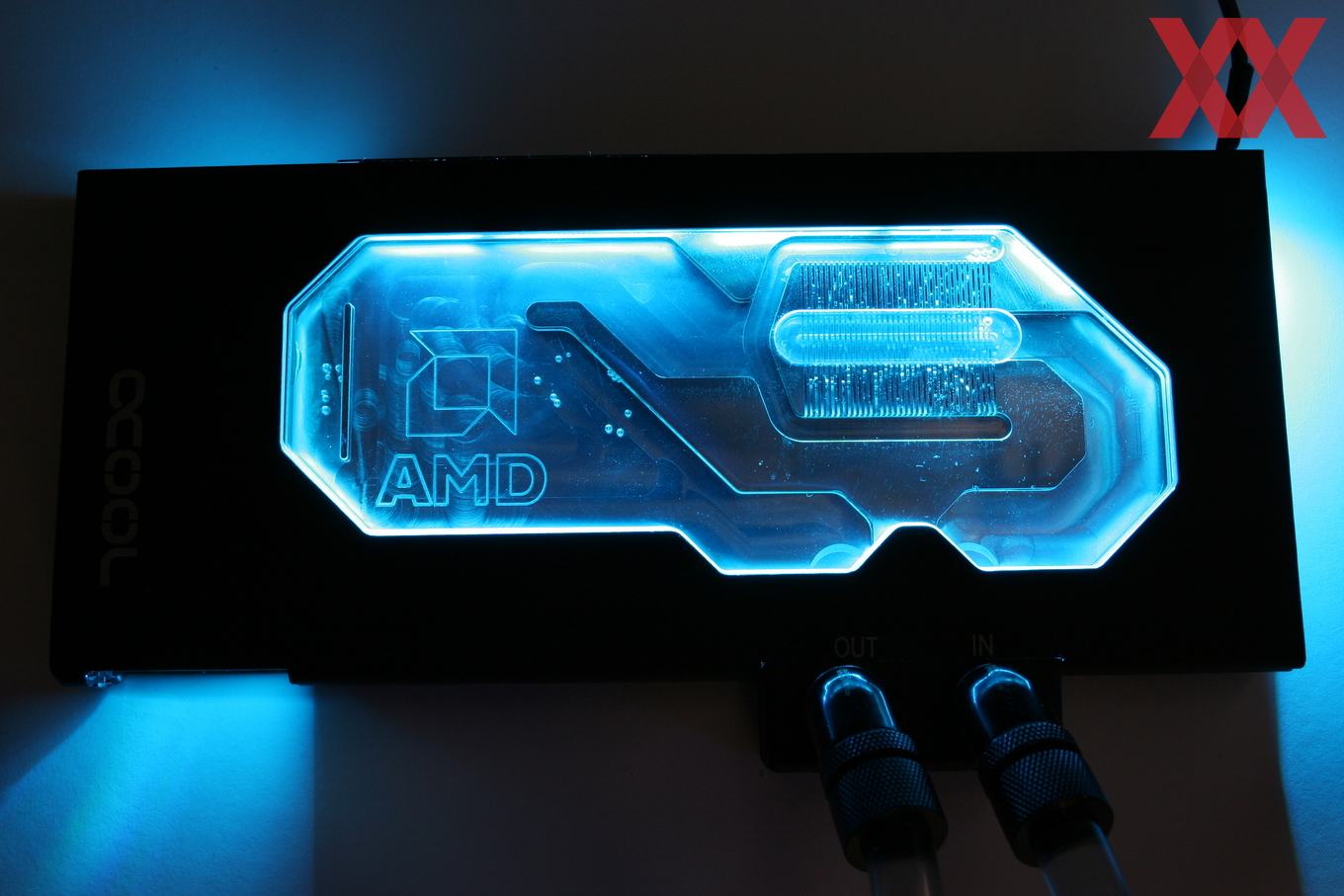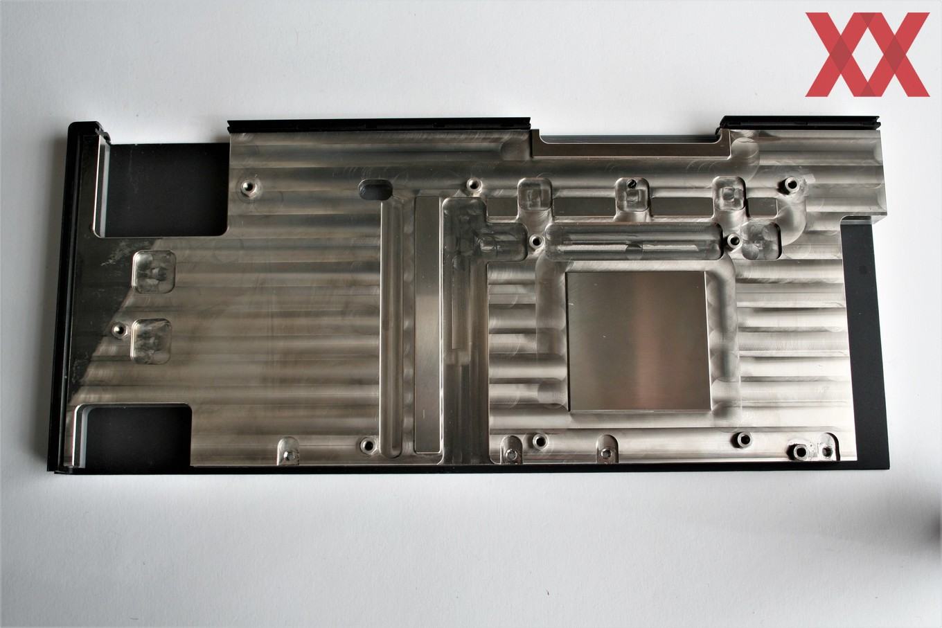 Bei dem Kühler in der Plexi-Variante ist außerdem ein RGB-LED-Stripe im Lieferumfang enthalten. Beachtet werden bei der Entscheidung, welche Version des Kühlers es werden soll, muss außerdem, dass nur die Plexi-Version eine glatte Backplate und zusätzliche Kunststoffabdeckungen besitzt, welche die eigentliche Grafikkarte hinter sich verstecken. Die Acetal-Ausführung bedient sich derselben Backplate, wie der NexXxoS GPX Kühler und verzichtet auf weitere optische Zusätze.