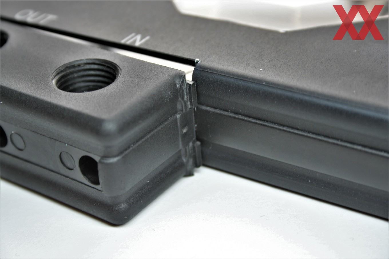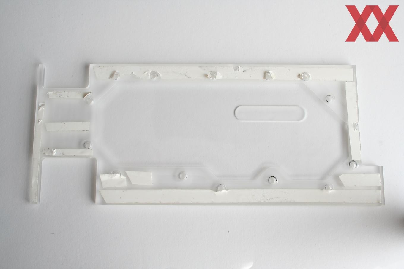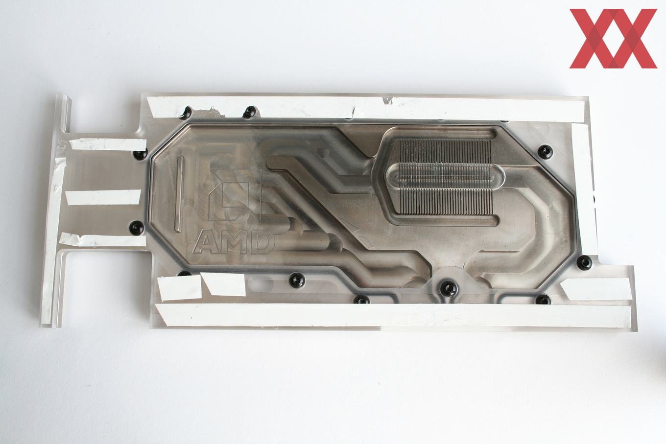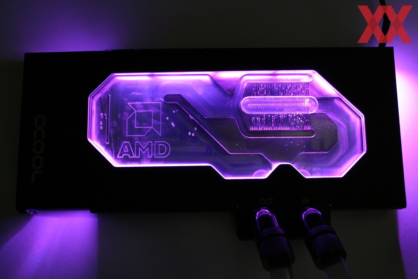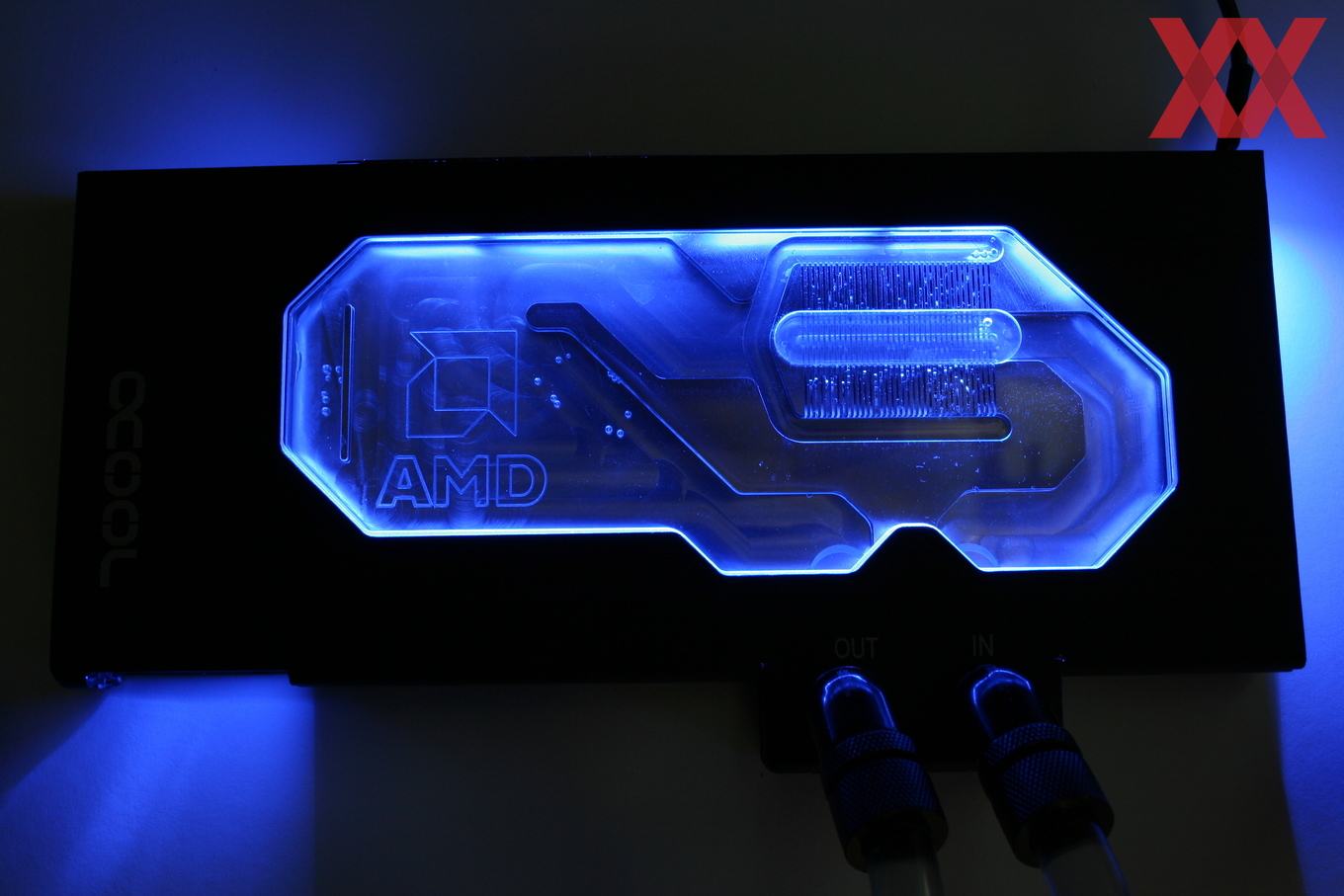 Bei dem Kühler in der Plexi-Variante ist außerdem ein RGB-LED-Stripe im Lieferumfang enthalten. Beachtet werden bei der Entscheidung, welche Version des Kühlers es werden soll, muss außerdem, dass nur die Plexi-Version eine glatte Backplate und zusätzliche Kunststoffabdeckungen besitzt, welche die eigentliche Grafikkarte hinter sich verstecken. Die Acetal-Ausführung bedient sich derselben Backplate, wie der NexXxoS GPX Kühler und verzichtet auf weitere optische Zusätze.