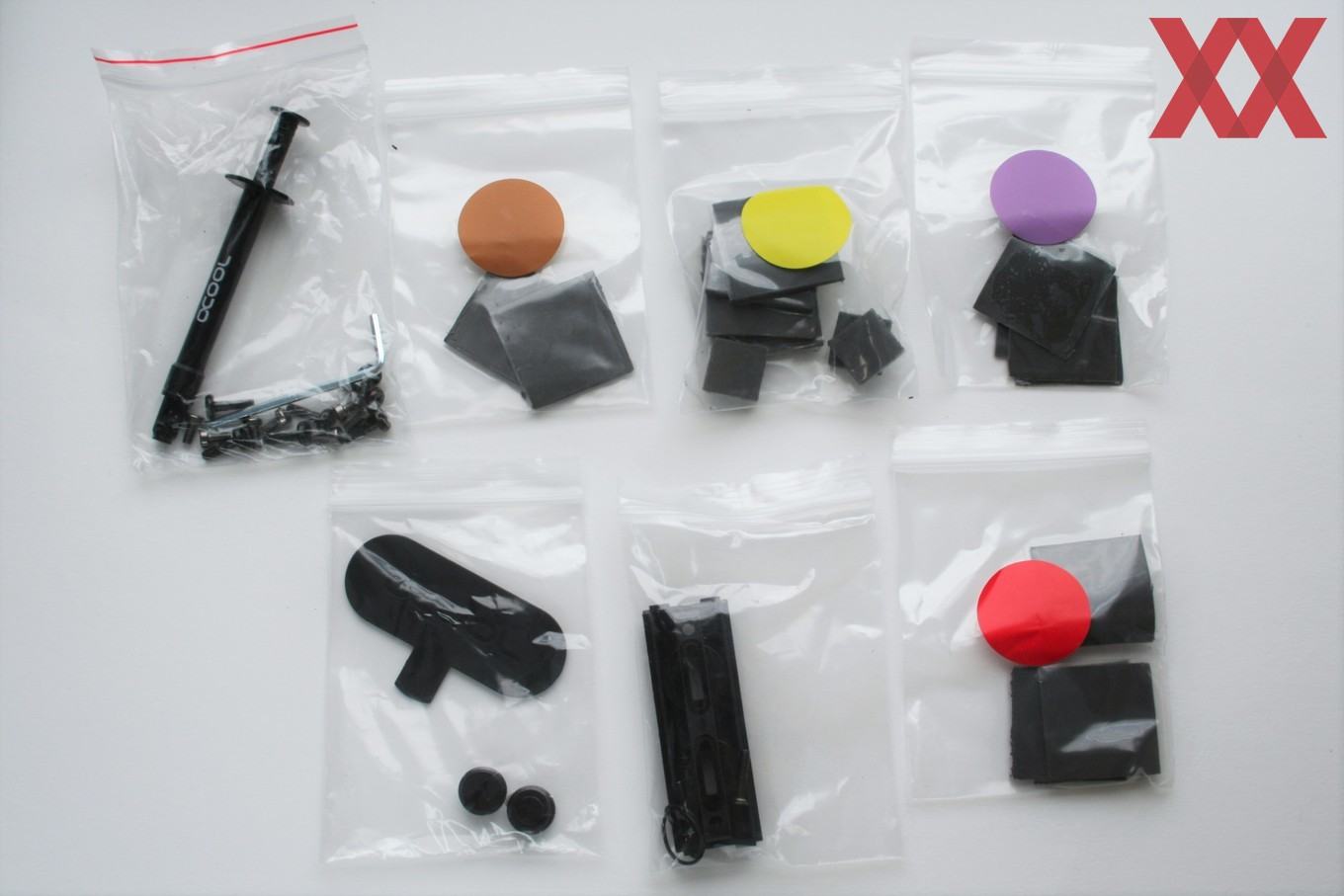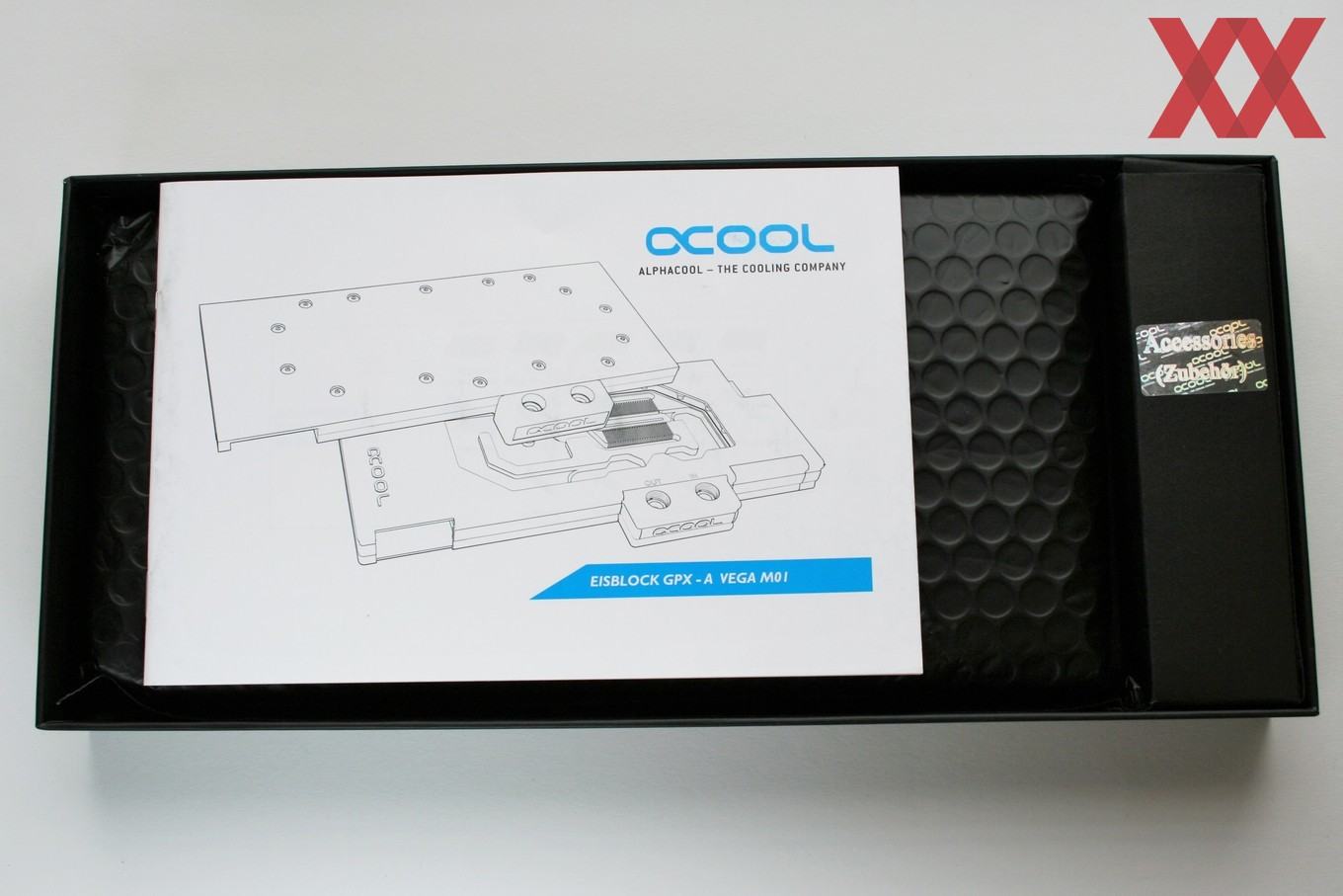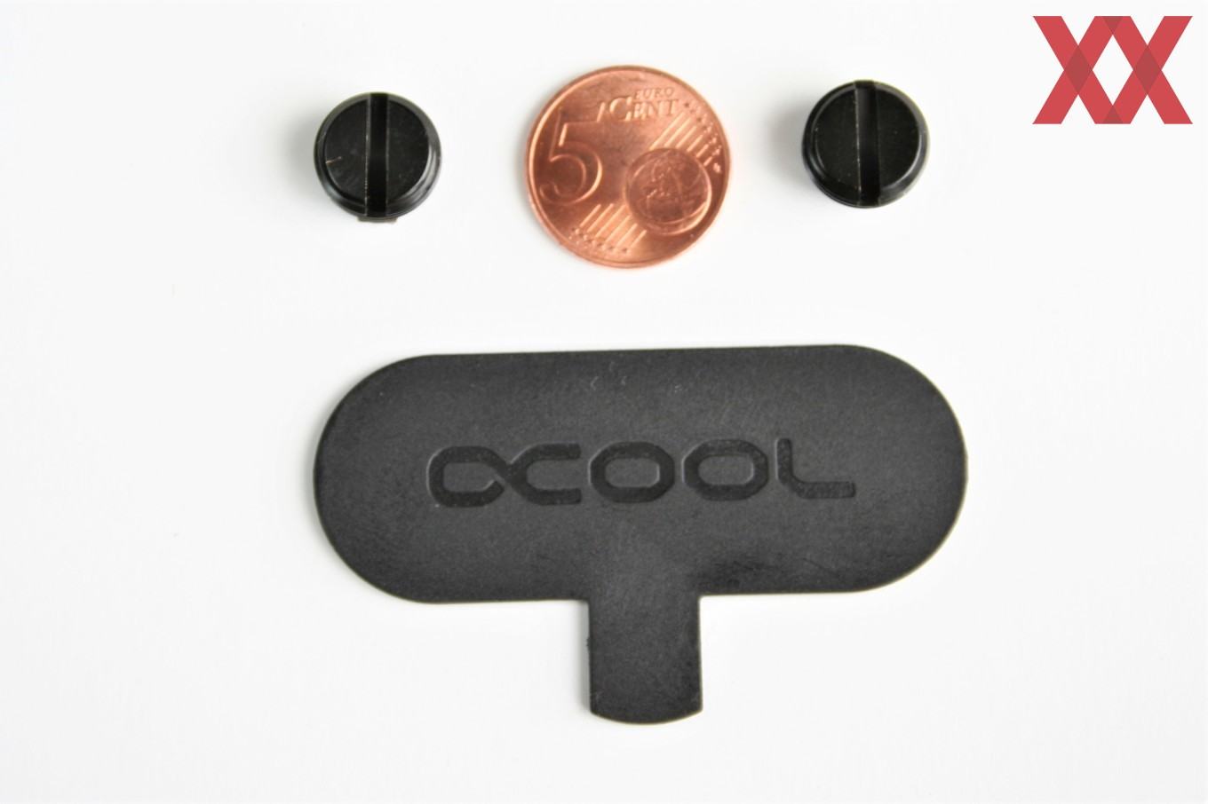 Der Lieferumfang fällt sehr üppig aus. Neben den notwendigen Schrauben und Wärmeleitpads zur Montage des Kühlers sind außerdem eine Spritze Wärmeleitpaste, ein Innensechskantschlüssel, zwei G1/4-Zoll-Verschlussschrauben inklusive passendem Werkzeug zum Festziehen und ein zweites Anschlussterminal mit zwei passenden O-Ringen enthalten. Letzteres ist entweder für den Betrieb einer SLI- bzw. CrossFire-Konfiguration notwendig oder falls die Schlauchführung der Wasserkühlung die Grafikkarte über einen unkonventionellen Weg einbindet.