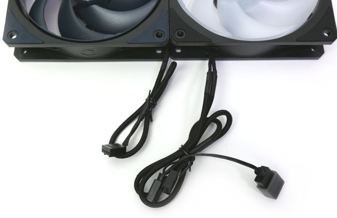 Am Mobius 120 hängt ein ummanteltes PWM-Kabel. Der Mobius 120P ARGB hat zusätzlich ein A-RGB-Kabel mit Stecker und Buchse. Die Kabel sind nur etwa 30 cm lang.