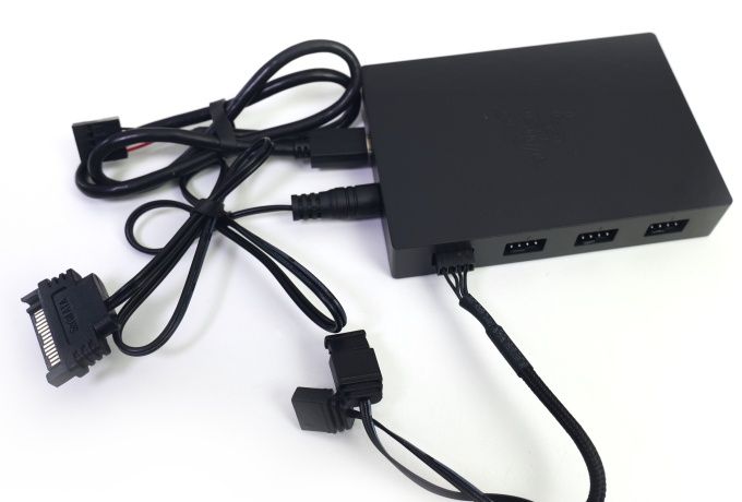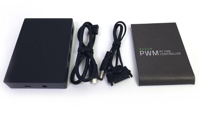Für die Steuerung von bis zu acht PWM-Lüftern kann Razers PWM PC Fan Controller genutzt werden. Diese Lüftersteuerung wird mit Anleitung, S-ATA-Stromkabel und einem Anschlusskabel ausgeliefert, das die Verbindung zu einem USB-2.0-Pfostenstecker des Mainboards herstellt.