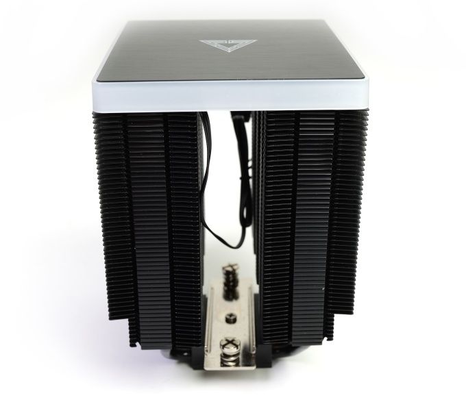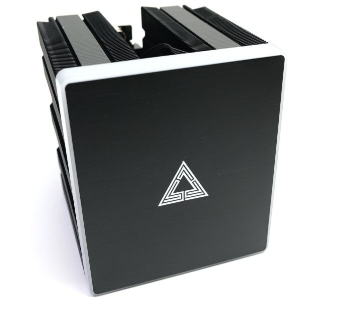 Der Metal DT24 Premium zeigt sich als großer Dual-Tower-Kühler mit annäherndem Würfelformat. Bei einer Größe (inkl. Lüfter) von 133,6 x 124 x 158 mm (L x B x H) ist er ein stattliches Modell.