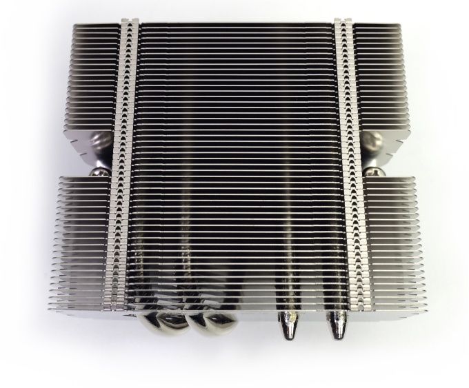 Insgesamt vier Heatpipes (und damit zwei mehr als beim NH-L9) leiten beim NH-L9x65 die Abwärme von der vernickelten Kupferbodenplatte zu den Kühlrippen ab.