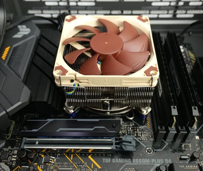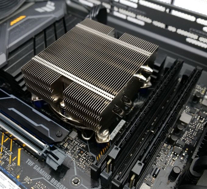 Im letzten Schritt wird der Lüfter wieder mit den Lüfterklammern am Kühler befestigt. Auf unserem Testsystem kann der NH-L9x65 auch in der Praxis mit hoher Kompatibilität überzeugen.