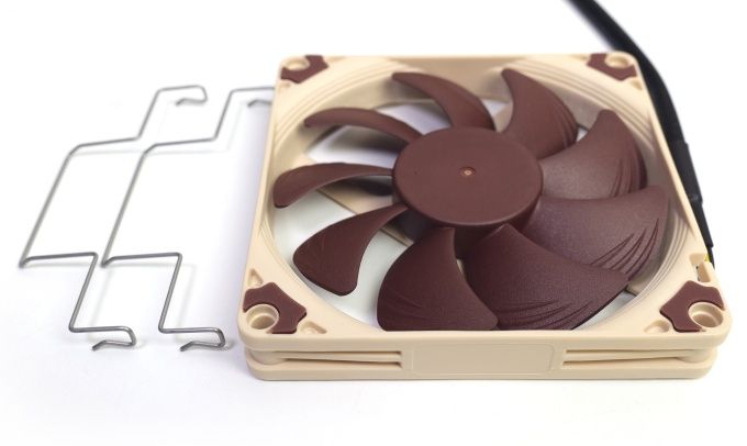 Der Noctua NF-A9x14 PWM ist ein nur 14 mm hoher 92-mm-Lüfter. Optisch zeigt er sich in den typischen Noctua-Farben und mit kleinen Entkopplungsflächen an den vier Ecken. Noctua gibt für das PWM-Modell einen Drehzahlbereich von 600 bis 2.500 U/min an. Als maximaler Volumenstrom sollen 57,5 m³/h erreicht werden. Beim Einsatz des mitgelieferten Low-Noise Adapters (L.N.A.) sinkt die Maximaldrehzahl auf 1.800 U/min und der maximale Volumenstrom auf 40,8 m³/h.