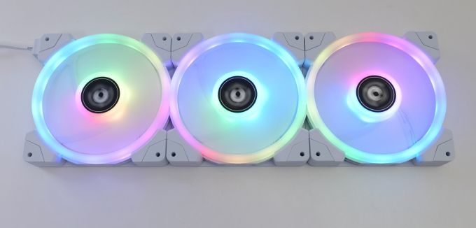 Gerade beim Einsatz mehrerer Gehäuse- oder Radiatorenlüfter nebeneinander machen die SWAFAN EX14 RGB optisch eine hervorragende Figur. Das gilt auch deshalb, weil Thermaltake schwarze und weiße Varianten anbietet und für eine intensive Beleuchtung des Lüfterrahmens und der Rotorblätter sorgt. Weil der Hersteller zur Anbindung auf einen speziellen Pfostenstecker setzt, wird zur Steuerung der Lüfter und der Beleuchtung aber zwingend ein Controller und die TT RGB PLUS-Software benötigt. Der Controller ist bei den ausschließlich erhältlichen Triple-Packs Teil des Lieferumfangs. Trotzdem wäre die Kombination aus PWM- und A-RGB-Kabel mit Standardanschluss natürlich flexibler.