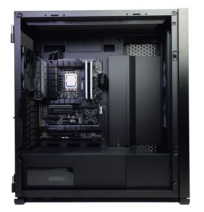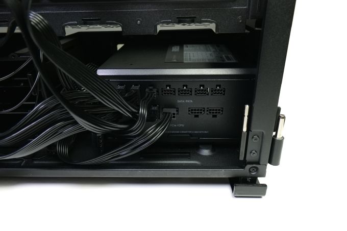 Das Netzteil ist im 7000D Airflow seitlich durch ein eigenes Window sichtbar. Von den Kabeln ist dank des überzeugenden Kabelmanagements hingegen wenig zu sehen. Mit montiertem Mainboard wird zudem noch einmal deutlich, wie großzügig das Corsair-Gehäuse ausfällt.