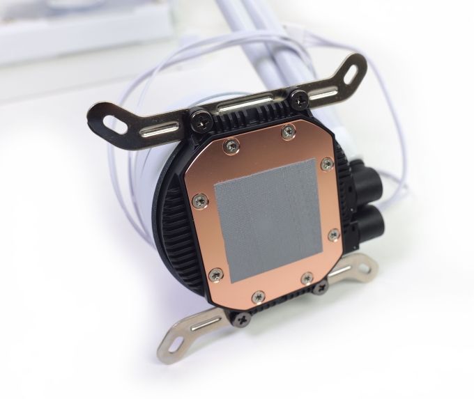 Valkyrie liefert die AiO-Kühlung mit voraufgetragener Wärmeleitpaste aus. Wir haben diese für eine bessere Vergleichbarkeit durch Arctic MX-6 ersetzt. Der Kontakt zum Prozessor wird über eine Kupferbodenplatte hergestellt.