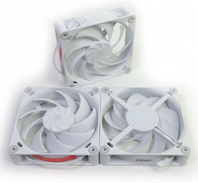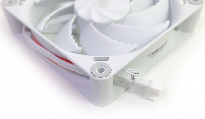 An den Ecken der Lüfter sitzen jeweils auf beiden Lüfterseiten entkoppelnde Gummiringe. Das Loopin Cable System sorgt dafür, dass die Lüfter einfach miteinander gekoppelt werden können. Dafür gibt es an jedem Lüfter sowohl einen PWM-Stecker als auch eine PWM-Buchse. Die Kabel dahin können einfach durch Öffnungen im Lüfterrahmen geführt werden, sodass weniger vom Kabel sichtbar ist.