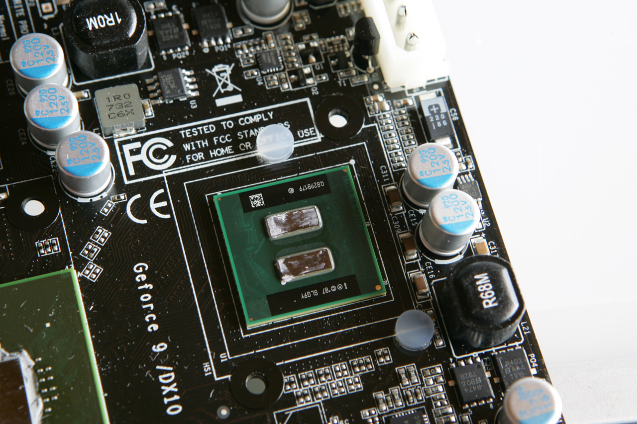 Der Grund dafür ist auf obigen Bild zu erkennen. Es handelt es sich um zwei einzelne Atom-Prozessoren, die in einem Package zusammengefasst wurden. Da der Atom auch Simultaneous Multi Threading, vergleichbar mit Hyperthreading, unterstützt, können bis zu vier Threads gleichzeitig berechnet werden.