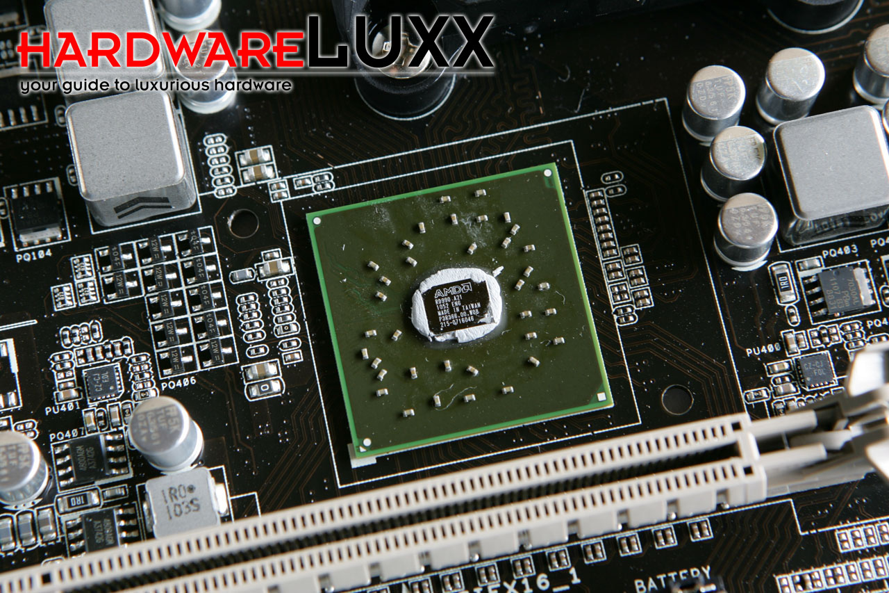 Die RD980 Northbridge bzw. der AMD 990X Chipsatz bietet einen PCI-Express-x16-Steckplatz und 2x 8 Lanes. CrossFire ist daher nur über zwei PCI-Express-Slots mit jeweils acht Lanes möglich. CrossFire gänzlich vermissen, lässt die RX980 Northbridge bzw. der AMD-970-Chipsatz. Auf die Northbridge mit integrierter Grafik, also die RS880P bzw. den AMD 980G müssen wir wohl noch bis Ende Juli warten. Auch hier steht noch ein PCI-Express-x16-Steckplatz zur Verfügung, falls die integrierte GPU nicht ausreichend performant sein sollte.