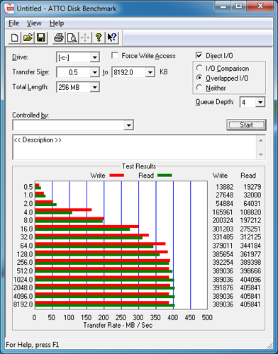 Dieselbe OCZ-SSD verwenden wir auch beim SATA-6G-Performancetest. Im Inneren der SSD gibt ein SandForce SF-2281-Controller die nötigen Kommandos. Der Hersteller selbst preist die SSD mit bis zu 550 MB/s lesend und bis zu 520 MB/s schreibend an. Wie wir aus den vorangegangenen Tests bereits feststellen durften, werden diese Transferraten auch tatsächlich erreicht.