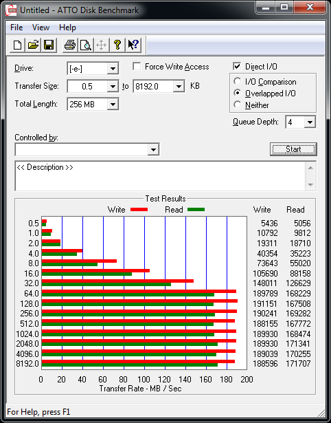 Das Ergebnis spricht für sich. In dieser Disziplin erlaubt sich das ECS-Board keine Patzer und liefert eine gute USB-3.0-Leistung ab. Dabei liegt die Schreibrate bei etwa 190 MB/s, konnte diese Marke sogar teilweise überschreiten. Die Leserate pendelt um die 170 MB/s.