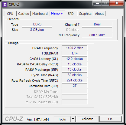 Die effektive RAM-Taktfrequenz von 2800 MHz war keine Herausforderung für das Z87M GAMING. Zusätzlich konnten wir von den von Corsair spezifizierten Latenzen etwas Abstand nehmen und die Latenzen verschärfen.