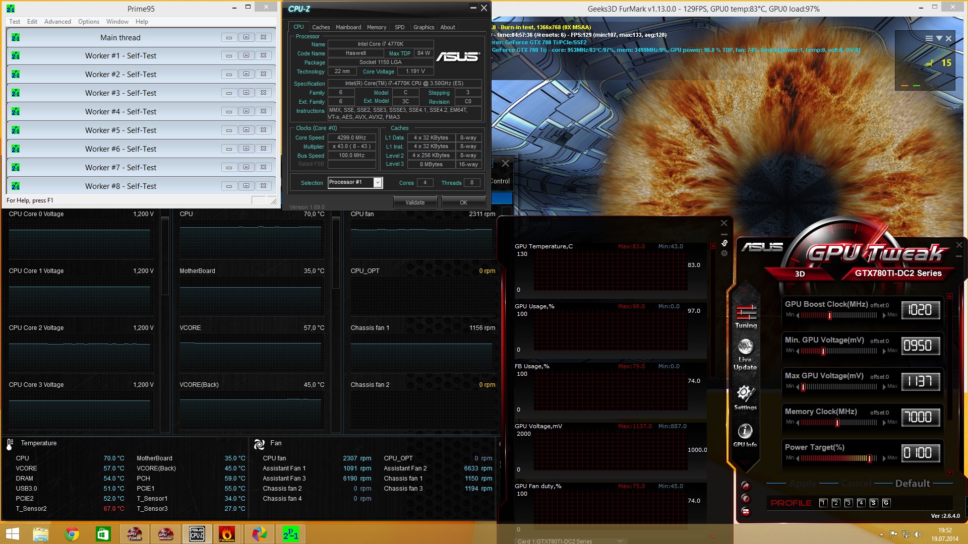 Als Besonderheit haben wir uns überlegt, dass wir für den Zeitraum des Härtetests die aktuellen Testdaten und den Status des Systems veröffentlichen wollen. Entsprechend sieht man im unten stehenden Bild eine Live-Ansicht des Systems mit allen Testdaten. Hierfür verwenden wir ein Tool, welches alle 60 Sekunden einen Screenshot des Bildschirminhaltes macht und hochlädt. Entsprechend können unsere Leser also immer "live" beobachten, welche Temperaturen vorherrschen und ob das System noch läuft. Ist der Screenshot älter als die aktuelle Uhrzeit, ist das System eingefroren.
