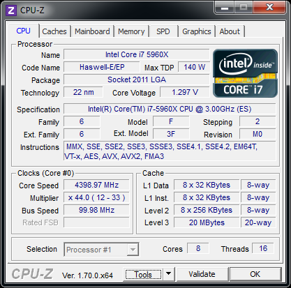 Aufgrund der höheren Kernanzahl des Core i7-5960X liegt der effektive Grundtakt auf allen acht Kernen bei genau 3 GHz. Wir konnten aus ihm noch weitere 1,4 GHz herauskitzeln, die ebenfalls auf allen acht Kernen anlagen. Im Übrigen macht sich der verlötete Heatspreader deutlich bemerkbar. Trotz hohem Takt und entsprechender Spannungserhöhung stiegen die Last-Temperaturen auf 65 bis maximal 80 Grad Celsius an.