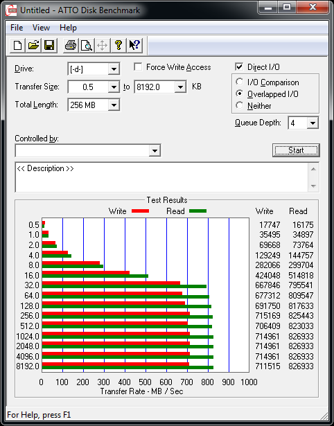 Über zwei PCIe-2.0-Lanes konnte die Samsung XP941 nicht richtig ausgelastet werden. An dieser Stelle limitiert die 10-GBit/s-Anbindung deutlich. Nichtsdestotrotz wurden recht performante 714 MB/s bei der Schreibdurchsatzrate und fast 827 MB/s im Lesebereich erreicht. Immerhin wird die SATA-6GBit/s-Spezifikation deutlich überboten.