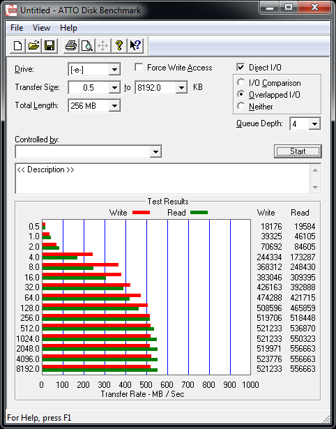 Absolut zufriedenstellend ist auch die Leistung an den SATA-Ports ausgefallen. 556 MB/s lesend und 523 MB/s schreibend sagen schließlich schon alles über die Leistungsfähigkeit.
