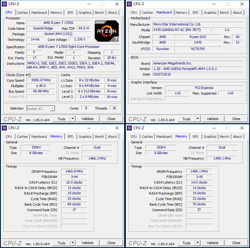 Für das MSI X470 Gaming M7 AC war es natürlich kein Problem, den Takt von 4 GHz zu halten. Mehr macht der Ryzen 7 1700X nicht mit. An Spannung mussten wir dazu 1,3625 Volt anlegen. Unterhalb davon wurde das System instabil.