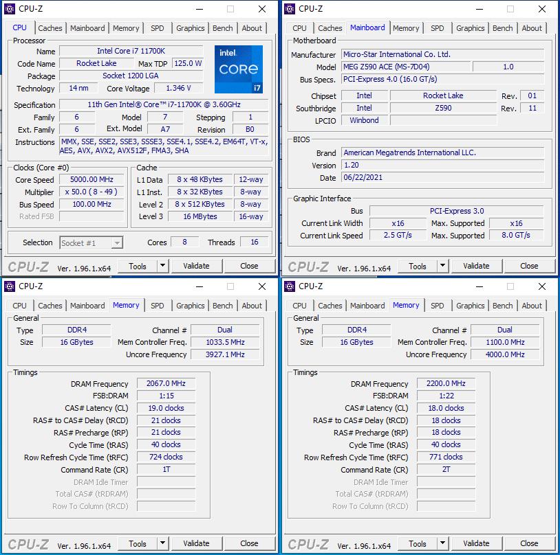 Problematisch war hingegen wieder der Gear-1-Betrieb. Wie wir herausgefunden haben, erlaubt das MSI MEG Z590 ACE im Gear-Mode auf Auto einen synchronen Takt bis DDR4-3466 (1.733 MHz I/O-Takt), wohingegen andere und günstigere Z590-Mainboards gerne auch bis DDR4-3600 gehen. Wählen wir im BIOS den Gear-1-Mode manuell aus, war bis DDR4-2666 hinunter kein Booten möglich. Demnach gehen wir weiterhin von einem BIOS-Problem aus. Wir haben MSI auf dieses Problem bereits hingewiesen.