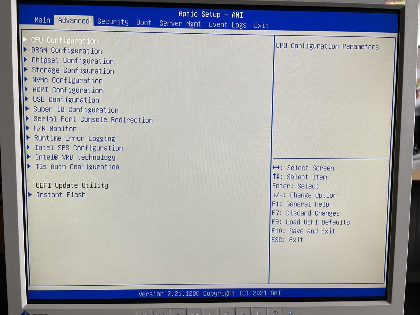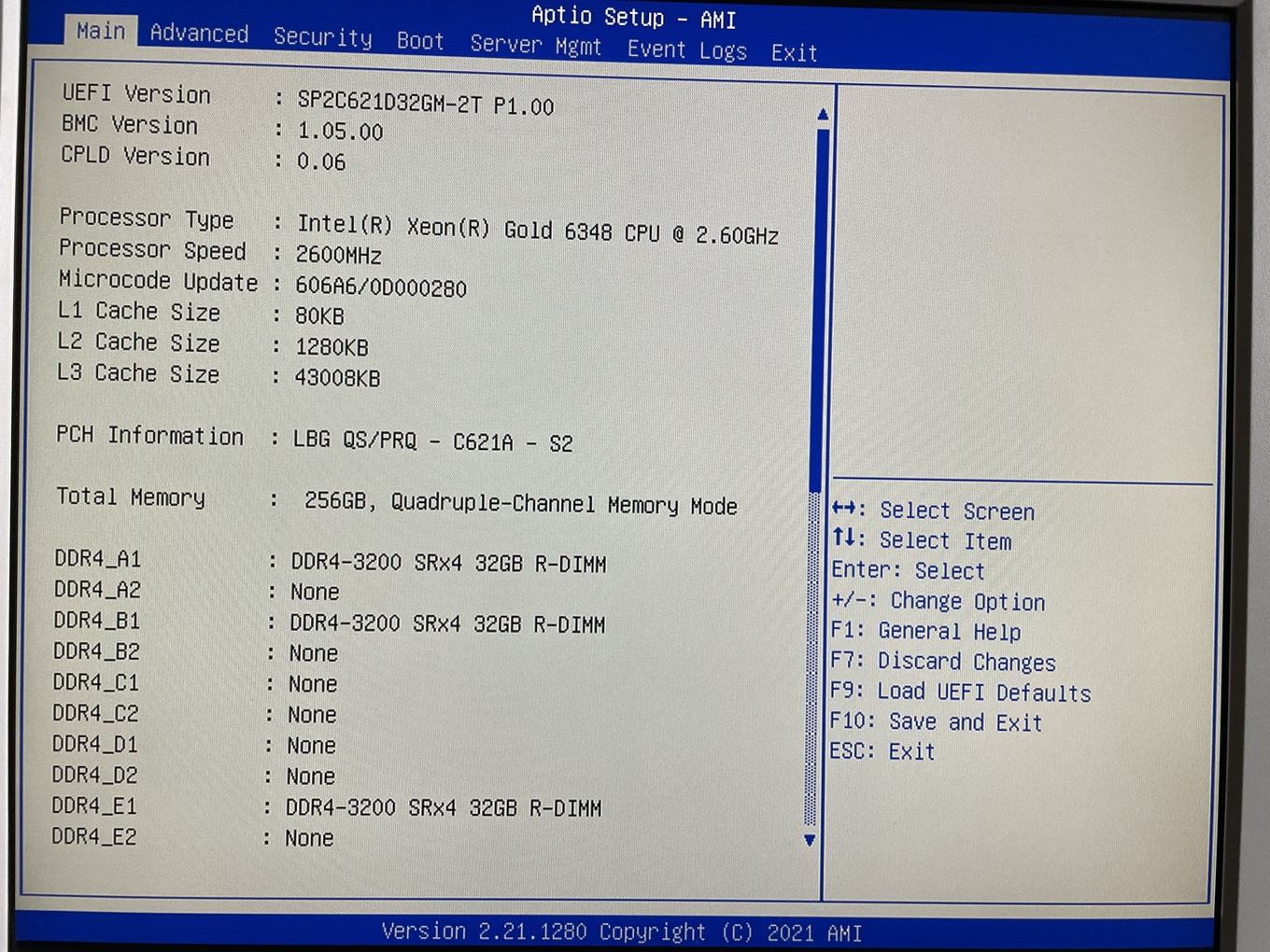 Werfen wir einen Blick in das BIOS. Während des Post-Vorgangs kann dieses einfach aufgerufen werden und zeigt sich ohne das inzwischen im Endkundenbereich übliche Schnick-Schnack. Im Falle des ASRock Rack SP2C621D32GM-2T ist das BIOS aber auch über den BMC zugänglich.