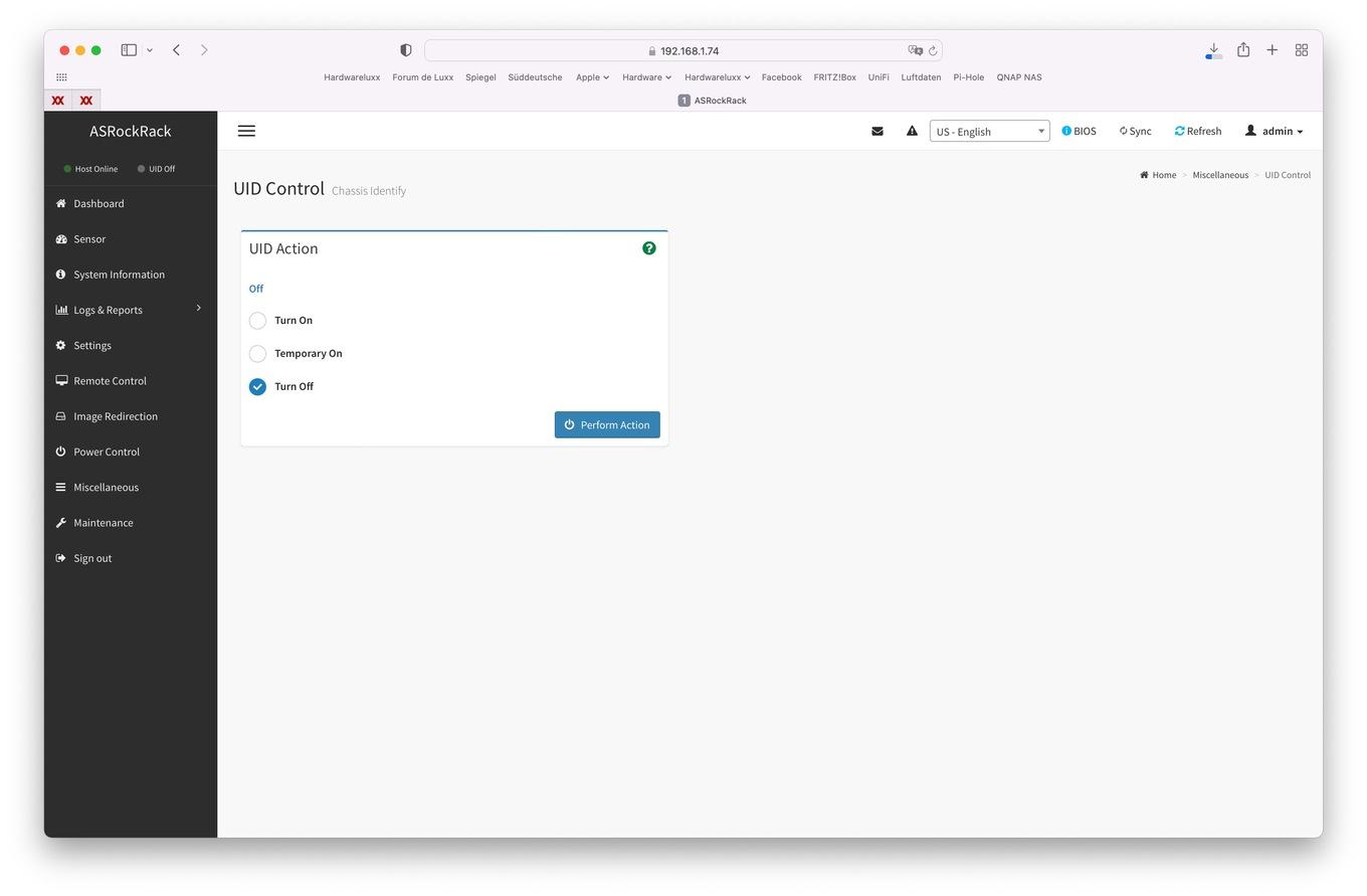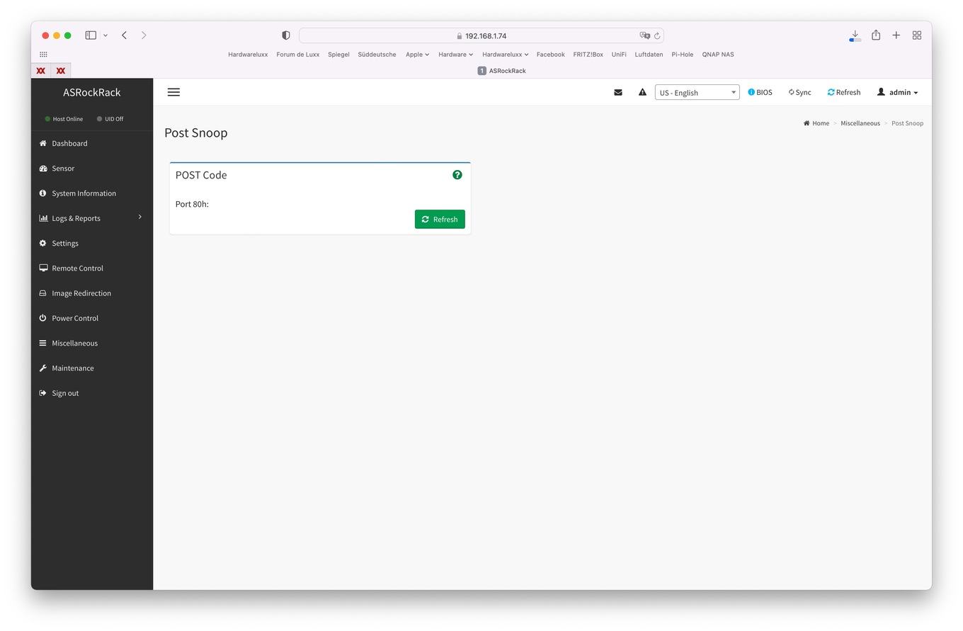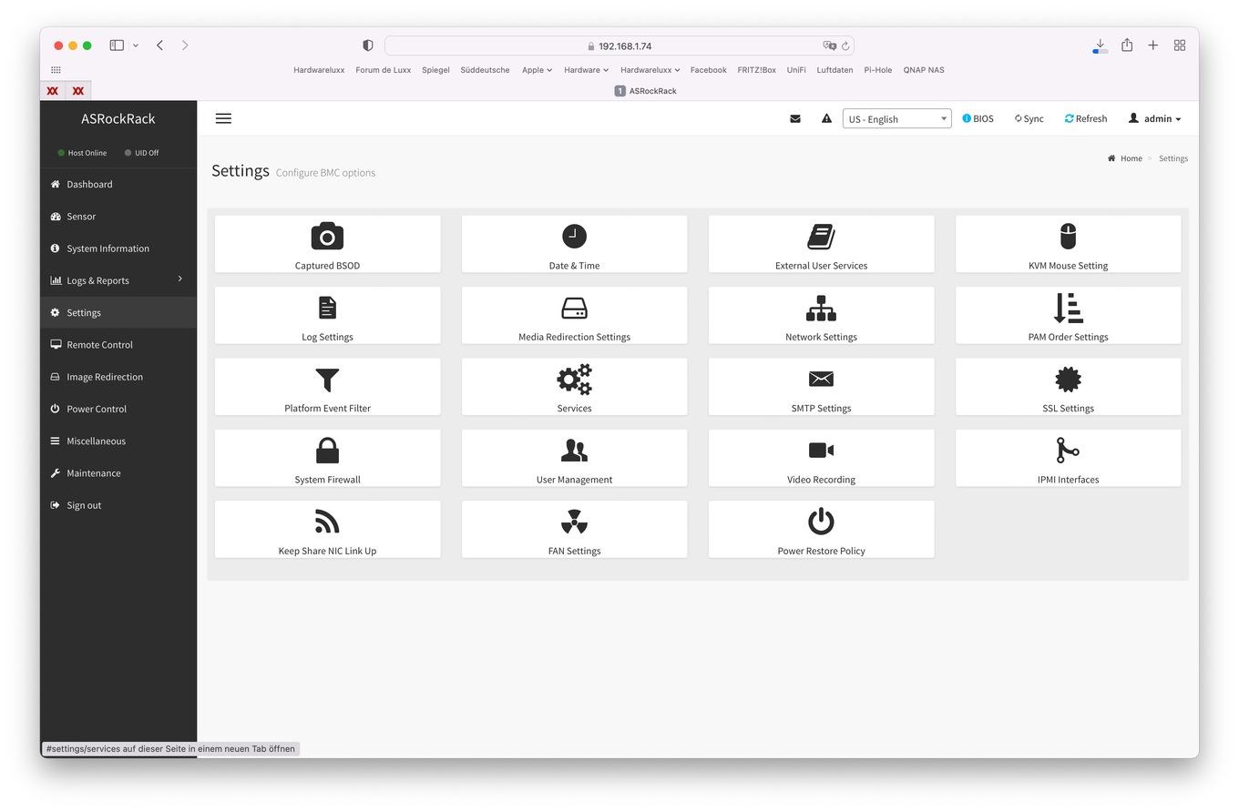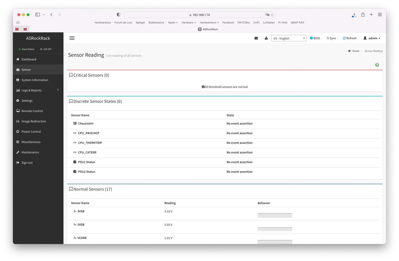 Über das Intelligent Platform Management Interface (IPMI) ist die Steuerung der wichtigsten Komponenten auch ohne physischen Zugriff auf das System oder das ein Monitor angeschlossen ist, möglich. Neben der Überwachung der verschiedenen Sensoren ist es darüber auch möglich, die verbaute Hardware zu identifizieren und ein Firmware/BIOS-Update durchzuführen.
