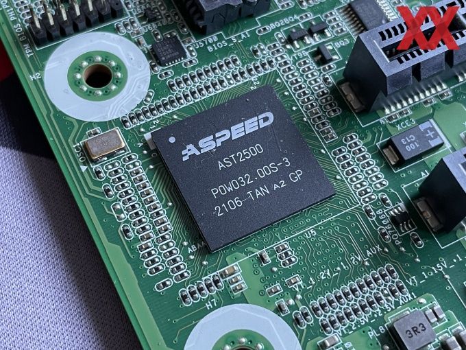 In dieser Klasse der Mainboards typisch ist der Einsatz eines Baseboard Management Controller (BMC). Dieser verfügt über eine kleine GPU, eigenen Speicher und eine eigene Netzwerk-Verbindung, über die dann auch das Management und Controlling des Systems, welches auf dem ASRock Rack ROMED8U-2T läuft, stattfindet.