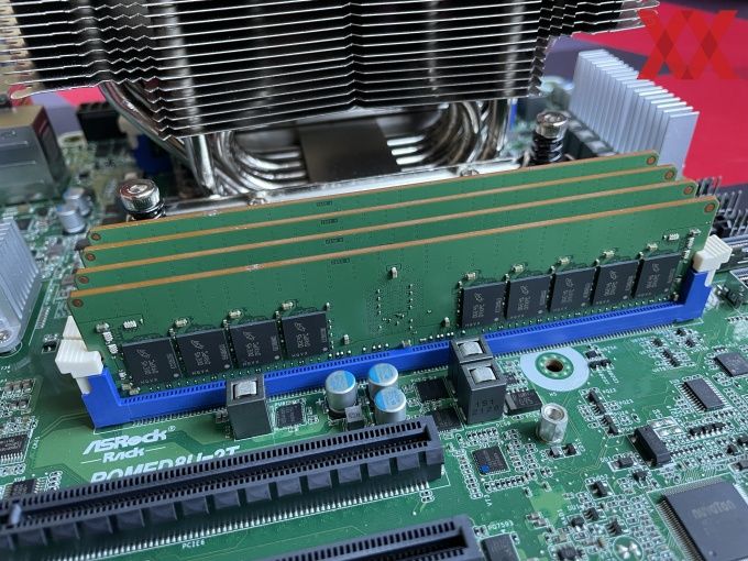 Der von uns verwendete Speicher hört auf den Namen MTA18ASF2G72PDZ-3G2E1 und stammt von Crucial, ist mit DDR4-3200 spezifiziert und bietet pro Modul eine Kapazität von 32 GB. Bei acht DIMMs pro Sockel kommen wir also auf eine Kapazität von 256 GB.