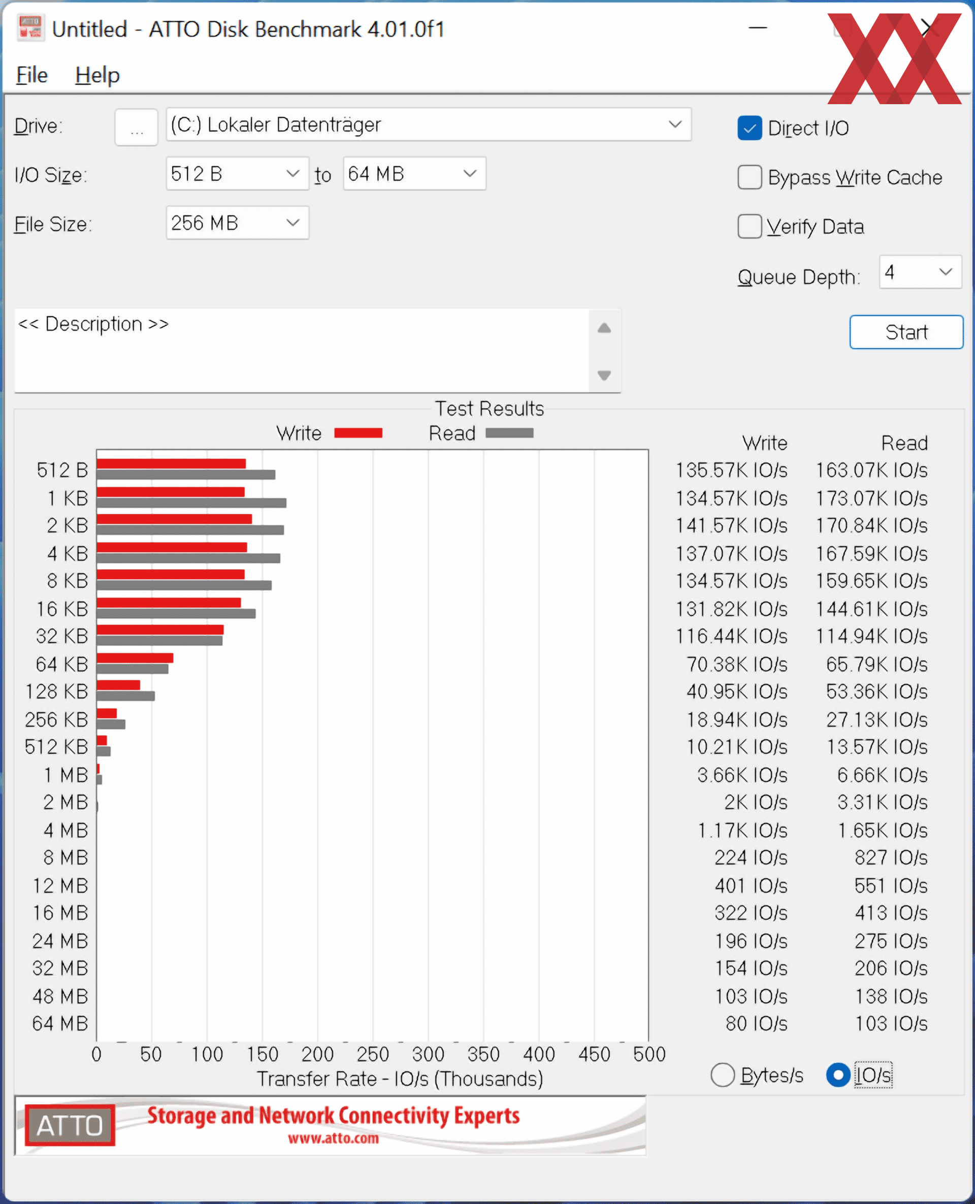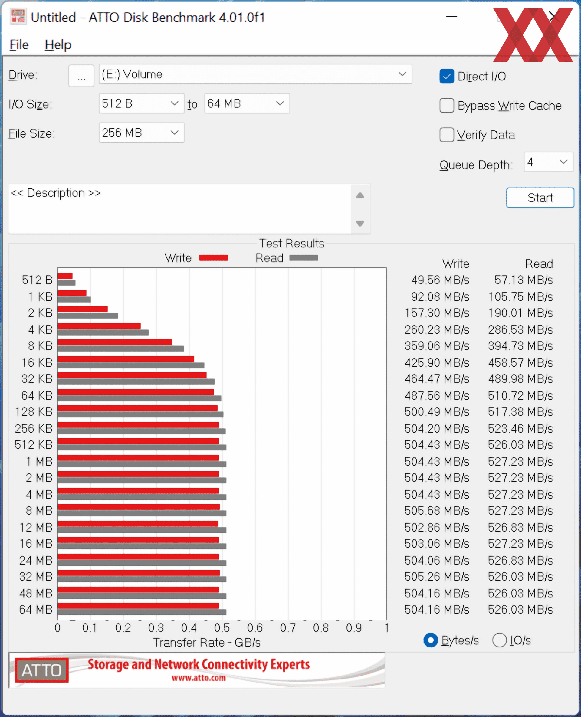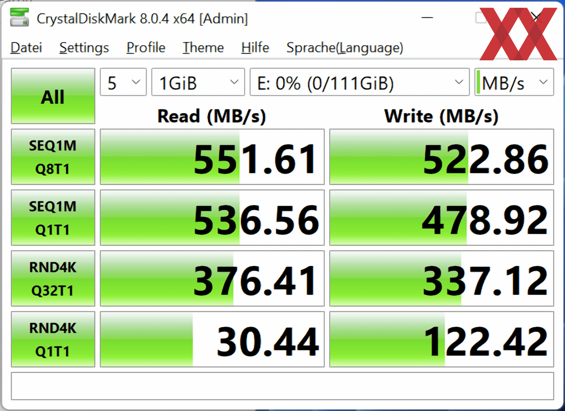 Bei knapp über 500 MB/s ist das Maximum der SATA-Schnittstelle erreicht und entsprechend würden alle SATA-Laufwerke auf diese Durchsatzraten kommen. Die Anbindung stellt hier die Limitierung dar.