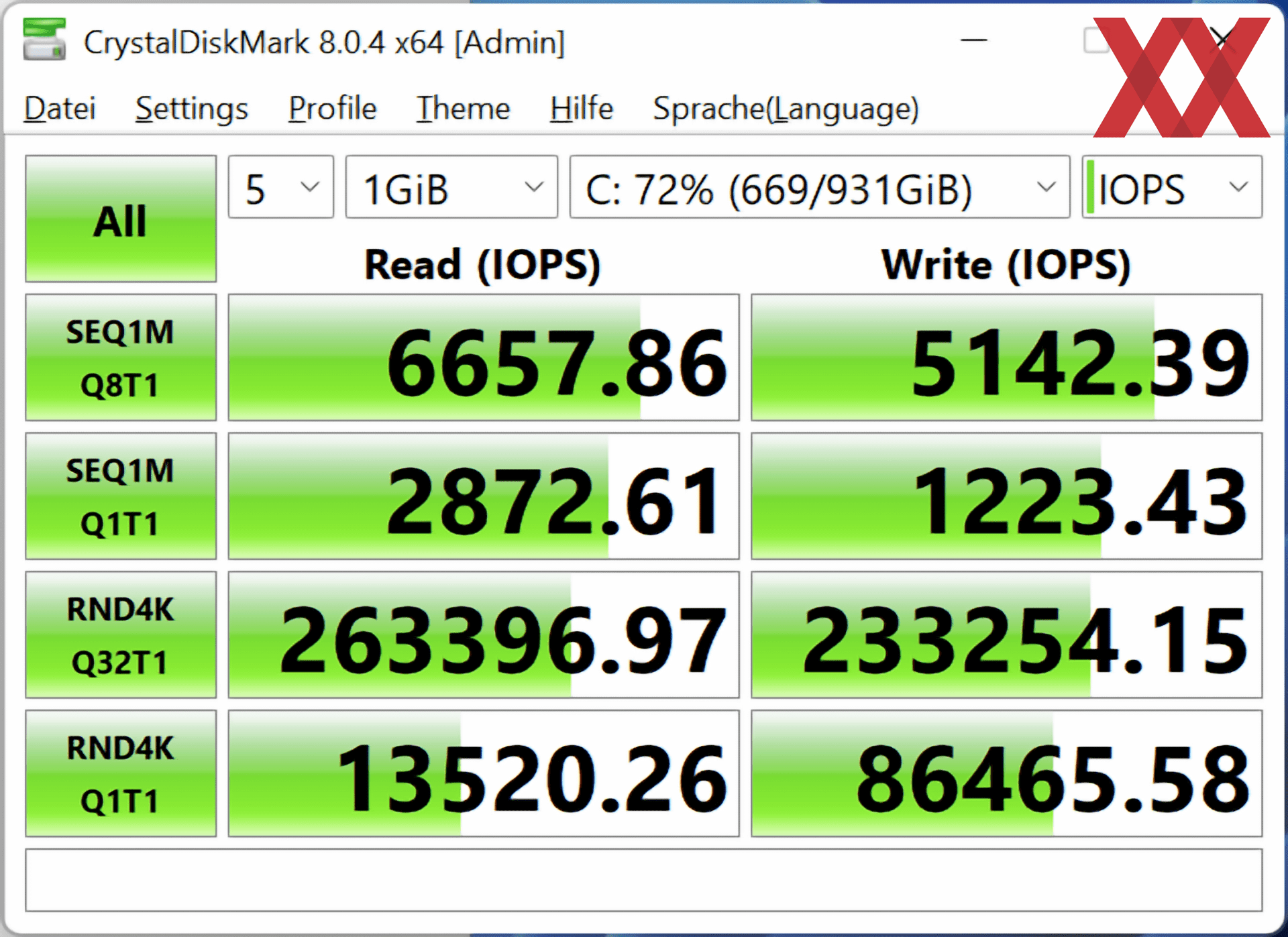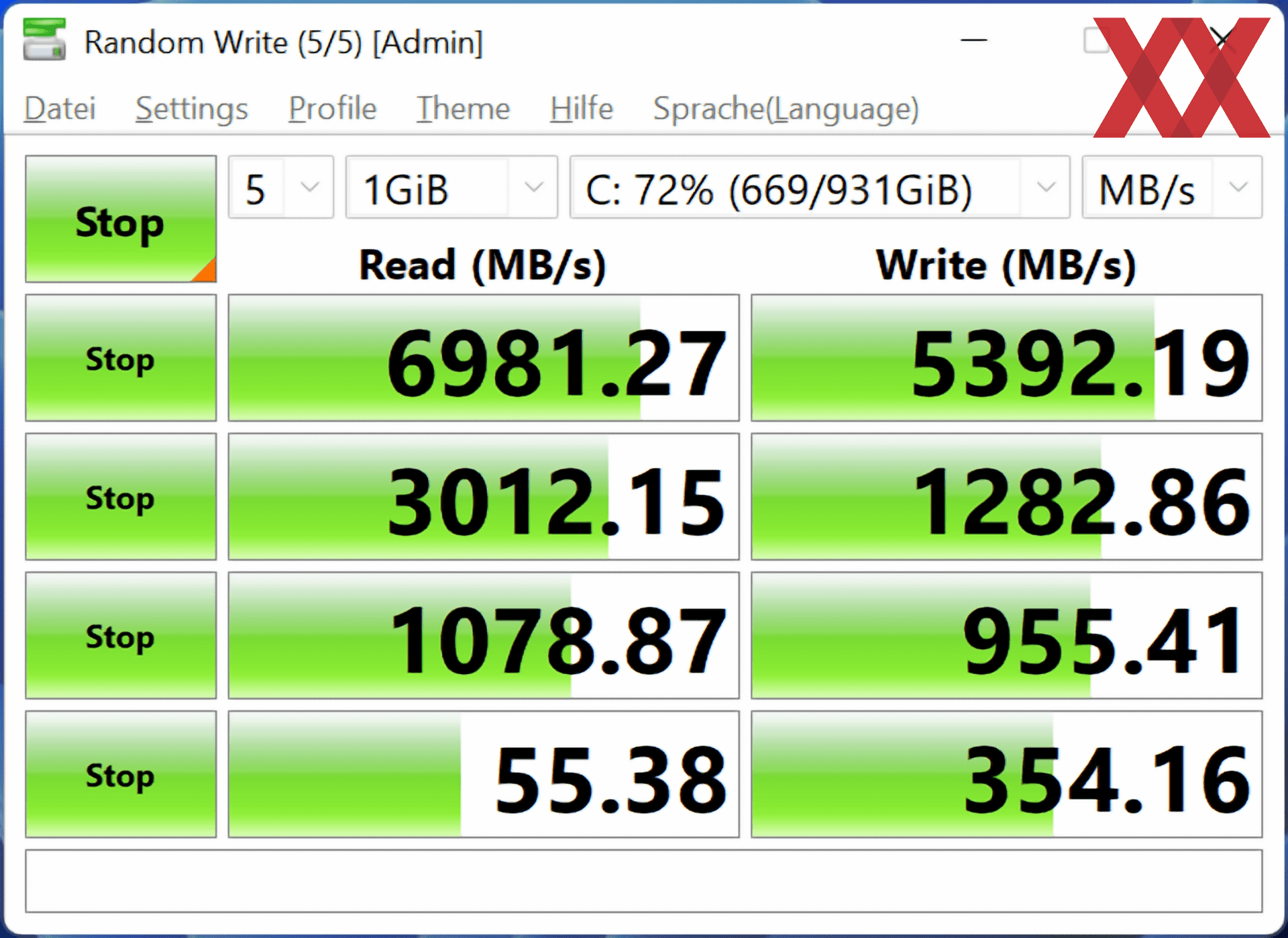Die Corsair MP600 kann in dem M.2-Steckplatz des ASRock Rack ROMED8U-2T zeigen, was sie kann. Fast 7 GB/s bzw. 5,4 GB/s sind nahe an dem, was der Controller und die Anbindung des Chipsatzes theoretisch ermöglichen. Wer auf eine schnelle Anbindung der SSD angewiesen ist und diesen Vorteil auch nutzen kann, findet bei diesem Mainboard zumindest die Möglichkeit PCIe 4.0 per M.2 auch nutzen zu können.