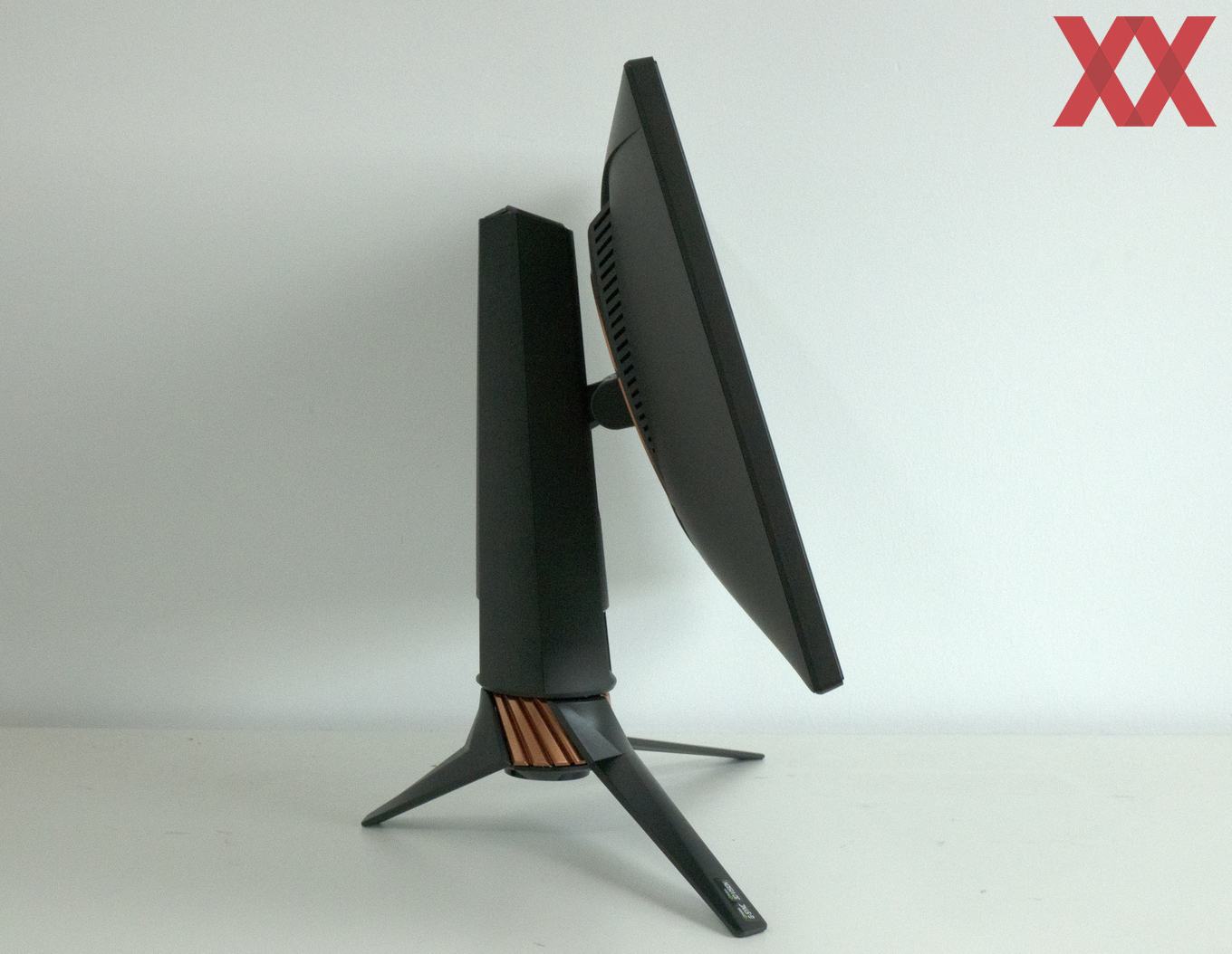 ASUS ruft für seinen 25-Zöller einen Premium-Preis auf, integriert dafür dann aber auch umfangreiche Ergonomie-Funktionen. Der 25-Zöller kann in der Höhe in einem ausreichenden Bereich justiert werden. Das ist vollkommen ausreichend, damit auch großgewachsene Nutzer problemlos ermüdungsfrei über einen langen Zeitraum arbeiten können. In der Neigung bietet ASUS ein Spektrum von -5 bis 20 Grad an, was ebenfalls voll und ganz ausreichend ist.