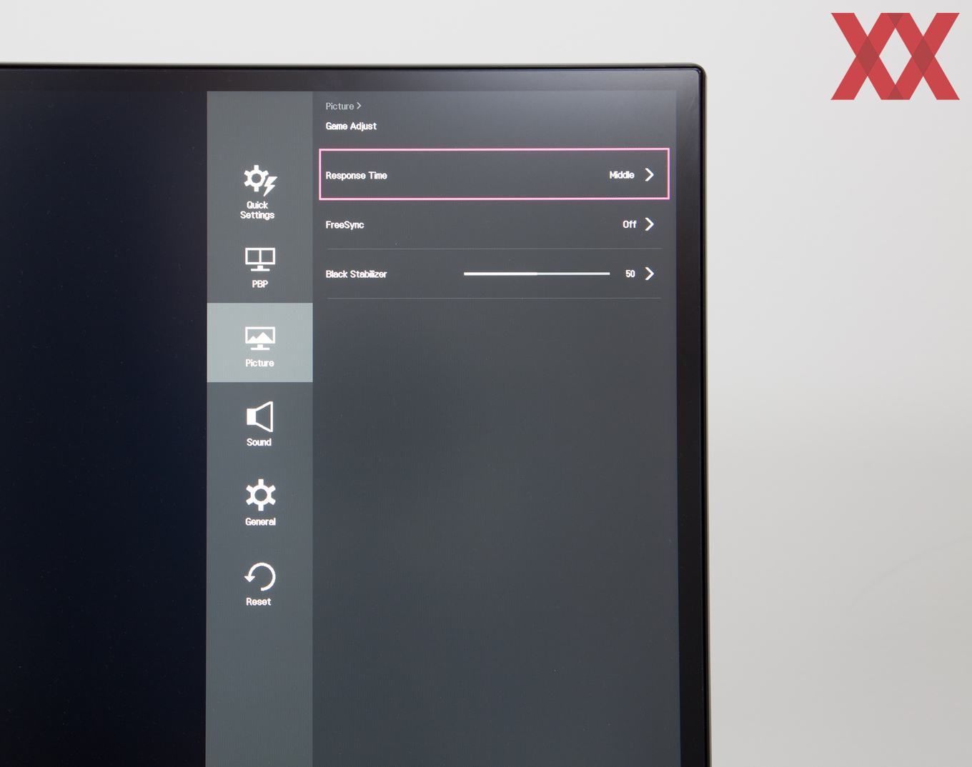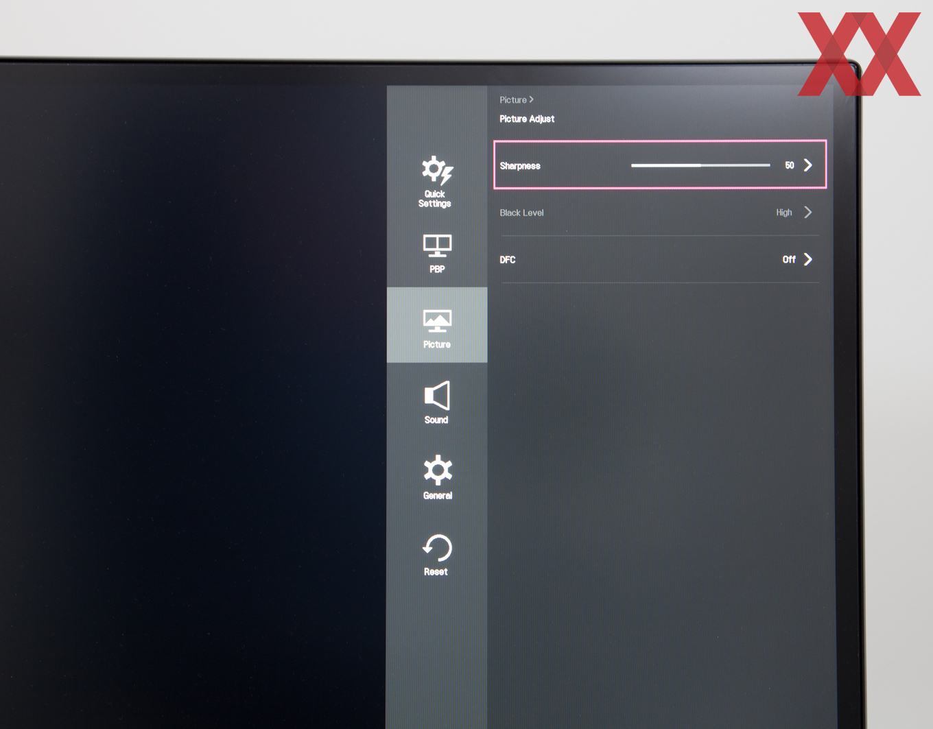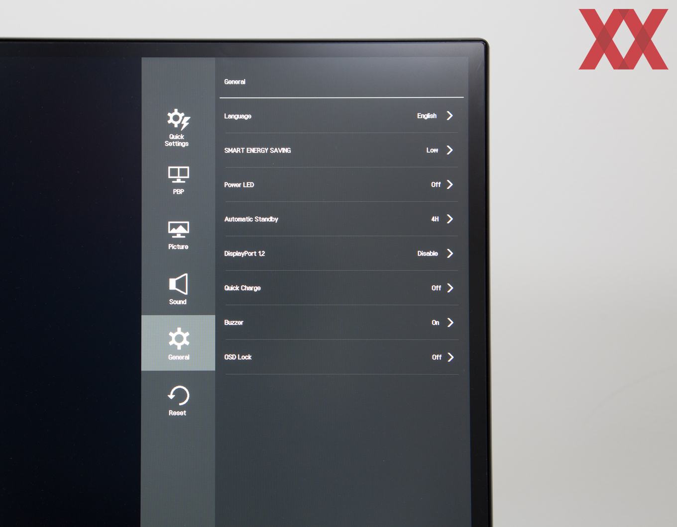Gut gelöst sind die ergonomischen Einstellmöglichkeiten des Gehäuses. LG bietet mit einer Höhen- und Neigungsverstellung das, was in der Praxis benötigt wird. Mancher Konkurrent bietet zwar einen größeren Einstellbereich, das kann aber nur in Sonderfällen wirklich ausgenutzt werden. Wieder einmal auf der ganzen Linie überzeugen kann das Bedienkonzept der Südkoreaner. Da wäre zum einen die Joystick-Steuerung, die es in Kombination mit dem guten Menü erlaubt, alle Einstellungen mit nur einem Bedienelement zielsicher und effizient vorzunehmen. Als i-Tüpfelchen gibt es zudem die angesprochene OSC-Software.