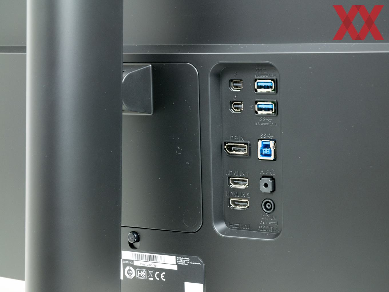 Davon einmal abgesehen, kann der LG 34CB98-B mit einer überzeugenden Leistung aufwarten. Das Gehäuse ist LG-typisch schick, fällt für den Business-Bereich aber etwas dezenter aus. Dank der schlanken Erscheinung hinterlässt aber auch die gänzliche schwarze Variante einen stilsicheren Auftritt. Das Anschlusspanel ist wie üblich, leider nicht gewinkelt ausführt, bietet aber einen großen Schnittstellen-Umfang inklusive eines Thunderbolt-2-Hubs. So wird der Monitor teilweise zur Docking-Station. Zeitgemäßer wäre es aber natürlich gewesen, einen Thunderbolt-3-Hub mit Typ-C-Anschluss zu integrieren, denn dann könnte ein Notebook auch direkt geladen werden.