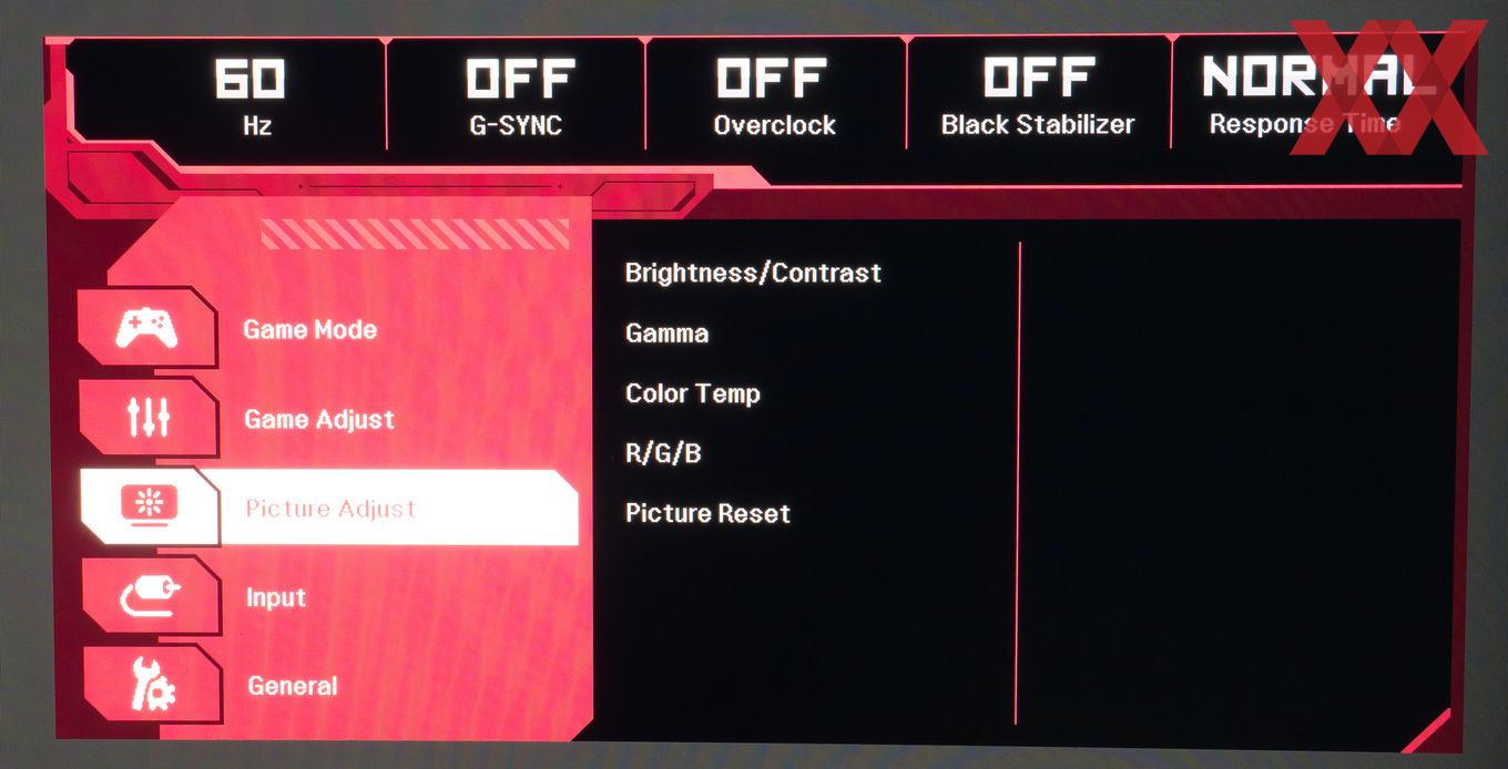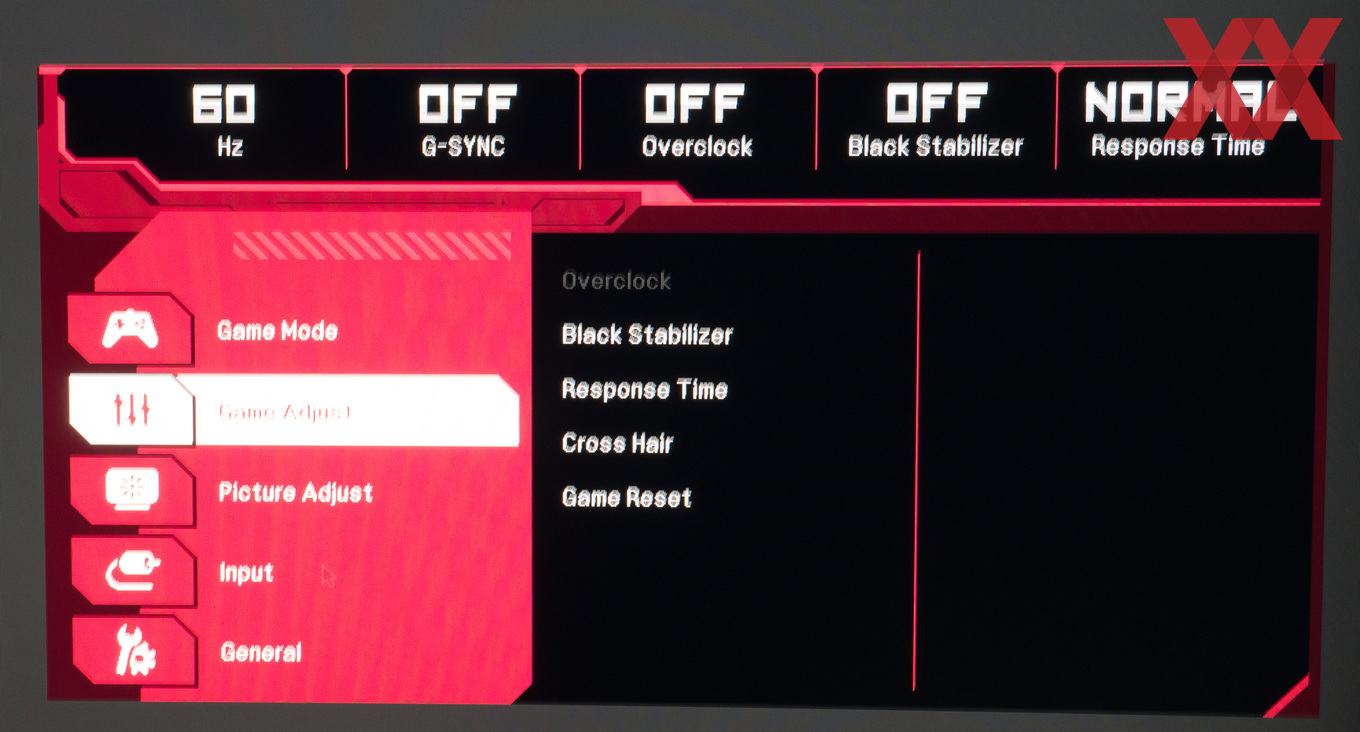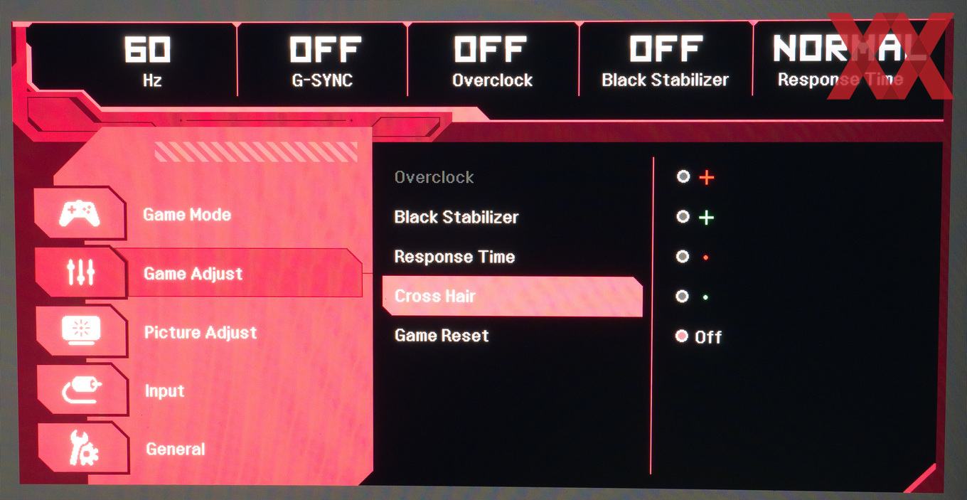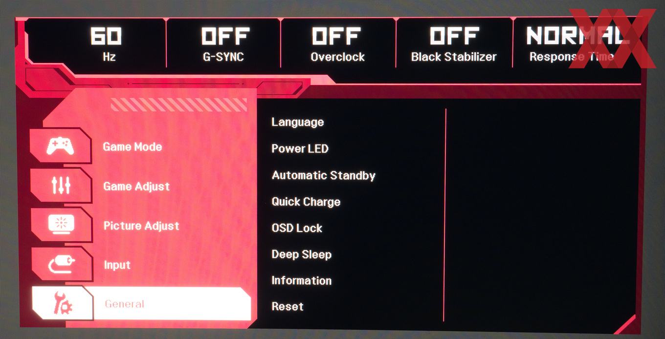 Die Veränderung am OSD ist hingegen nicht zu übersehen. Setzte LG zuletzt auch bei seinen Gaming-Displays auf das gewohnte Menü, gibt es nun eine spezielle Gaming-Optik. Am grundlegenden Aufbau ändert sich aber wenig. Es gibt wie bei LG üblich zwei Ebenen. Über die erste Ebene erhält der Nutzer Zugriff auf die wichtigsten Funktionen, beispielsweise die Gaming-Presets. In der zweiten Ebene wird dann der gesamte Funktionsumfang geboten. Alle für ein Gaming-Display relevanten Funktionen sind mit von der Partie.