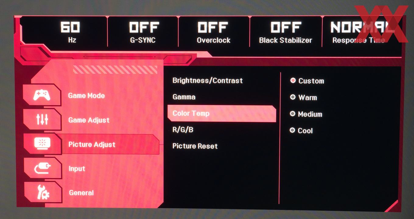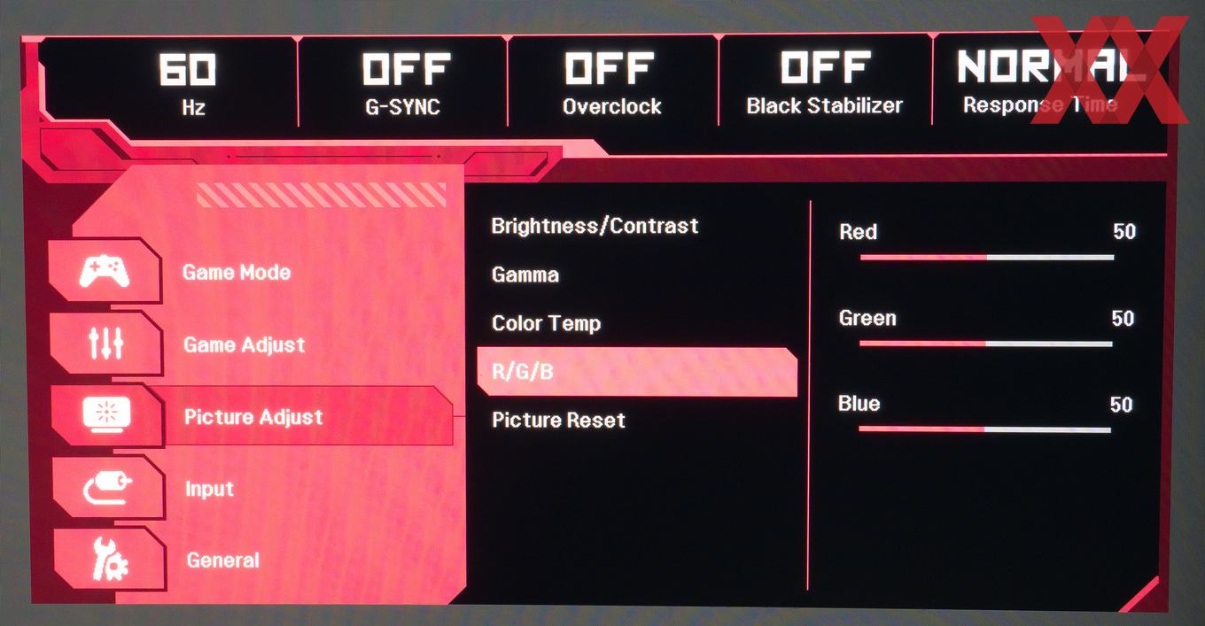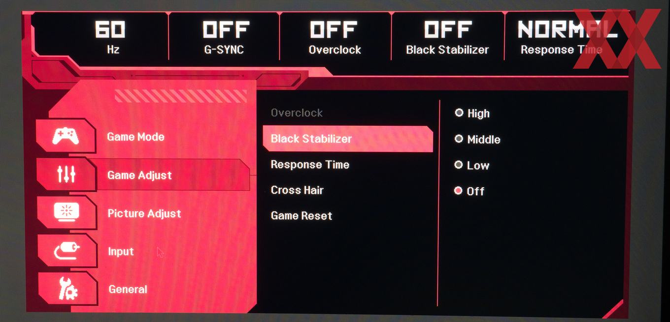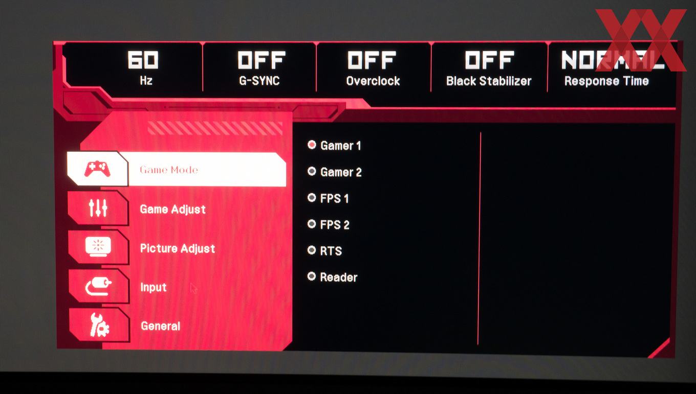 Die Veränderung am OSD ist hingegen nicht zu übersehen. Setzte LG zuletzt auch bei seinen Gaming-Displays auf das gewohnte Menü, gibt es nun eine spezielle Gaming-Optik. Am grundlegenden Aufbau ändert sich aber wenig. Es gibt wie bei LG üblich zwei Ebenen. Über die erste Ebene erhält der Nutzer Zugriff auf die wichtigsten Funktionen, beispielsweise die Gaming-Presets. In der zweiten Ebene wird dann der gesamte Funktionsumfang geboten. Alle für ein Gaming-Display relevanten Funktionen sind mit von der Partie.