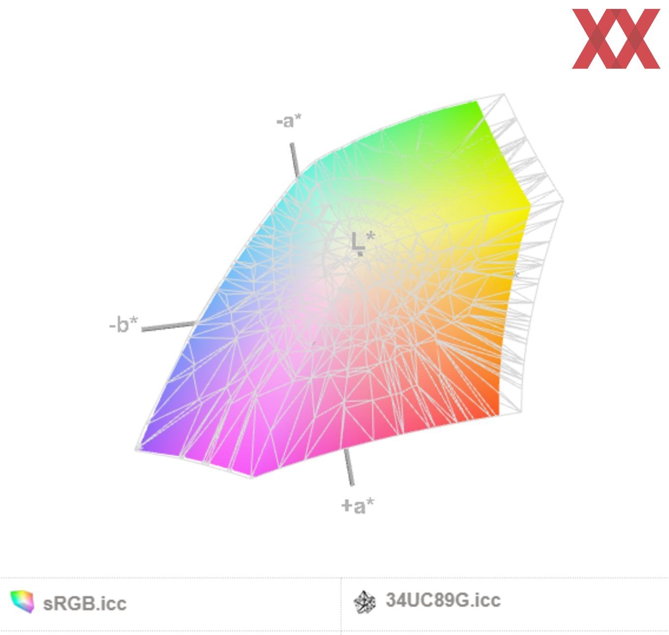 In unseren üblichen Messungen zum Stromverbrauch bei einer Helligkeit von 150 cd/m² konnten wir einen Wert von 44,6 Watt ermitteln. Das führt zu einem Ergebnis von 0,03858 Watt/Zoll². Damit entpuppt sich LGs Gaming-34-Zöller nicht unbedingt als Stromspar-Wunder – gerade vor dem Hintergrund der nicht allzu hohen Auflösung.