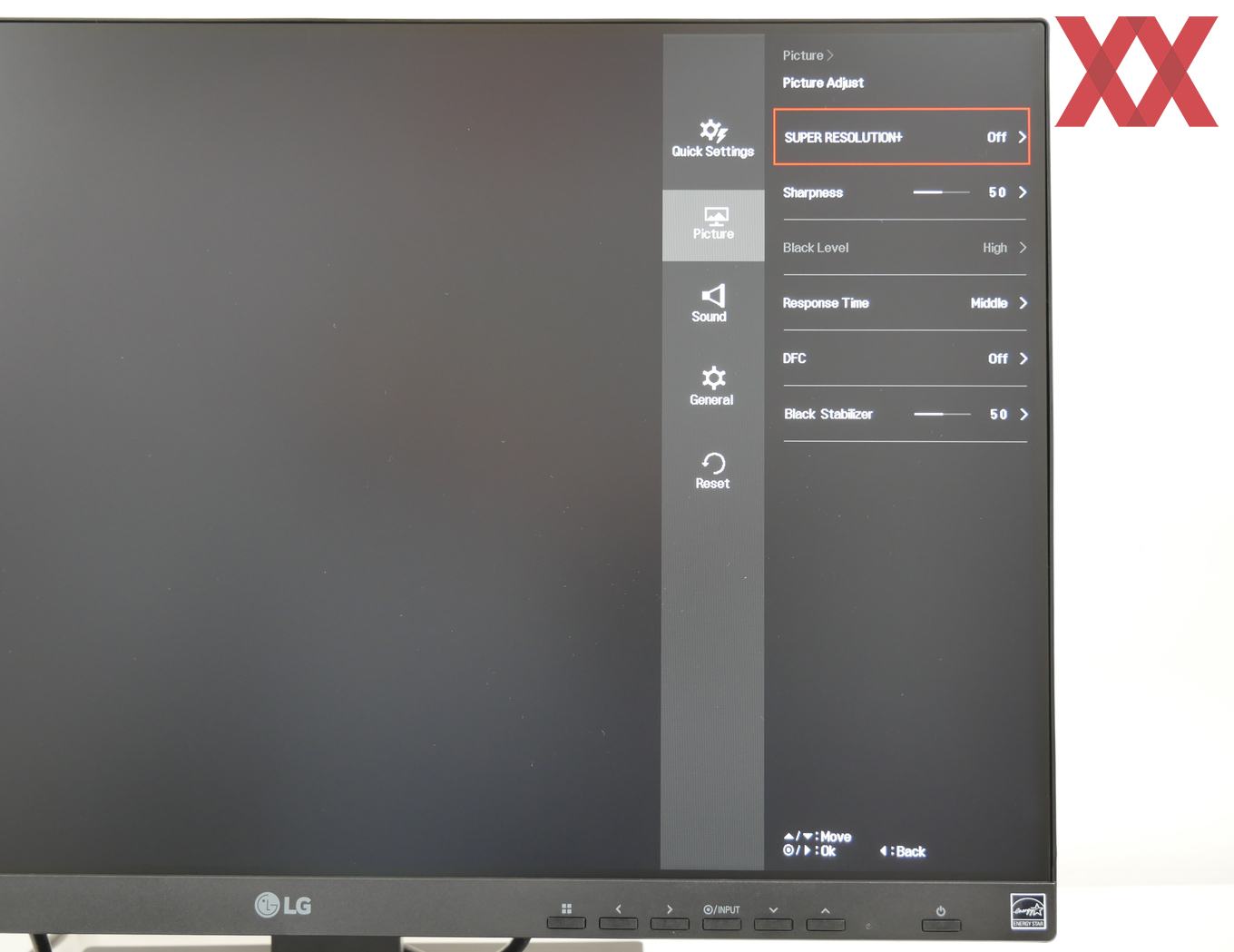 Kleinere Abstriche müssen bei der Bedienung akzeptiert werden, denn LG verzichtet auf die bewährte Joystick-Eingabe und nutzt zahlreiche einzelne Elemente. Die sind aber zumindest gut beschriftet, sodass in Kombination mit dem gut strukturierten OSD nach einer kurzen Eingewöhnungszeit eine ordentliche Bedienung möglich ist.