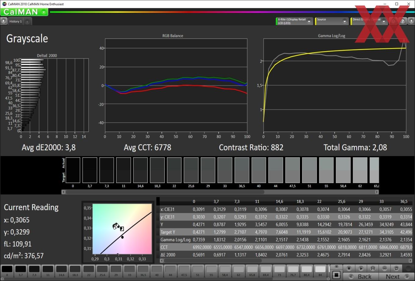 Die Gamma-Kurve sieht nicht allzu überzeugend aus und hat gerade im hohen IRE-Bereich mit einigen Schwankungen zu kämpfen.