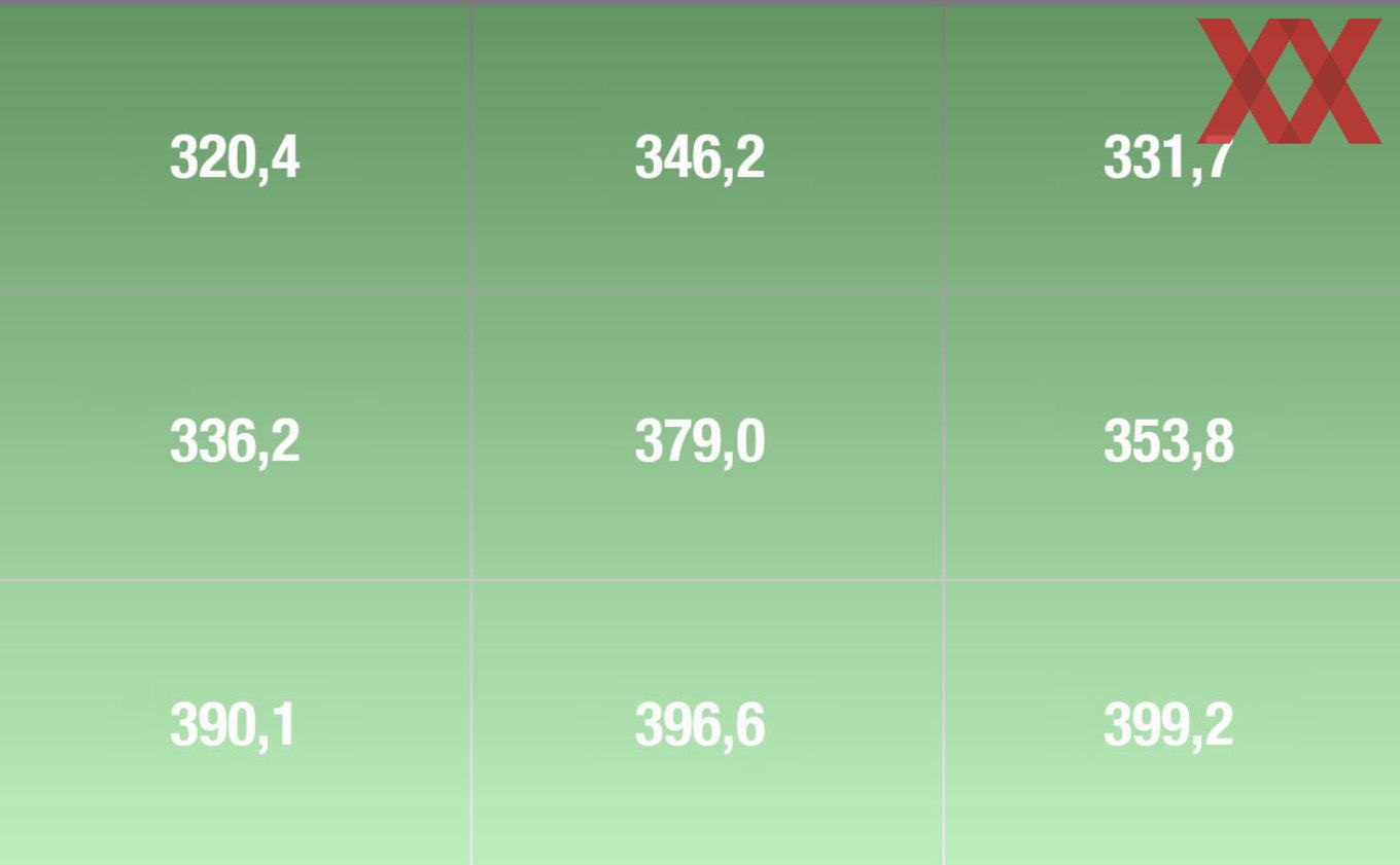 Ungewöhnlicherweise erreicht der LG 34GN850 seine maximale Helligkeit nicht beim zentralen Messfeld, sondern in der unteren Reihe. Mit einer maximalen Helligkeit von 399,2 cd/m² und einer gemittelten maximalen Leuchtkraft von 361,5 cd/m² fällt LGs Display damit knapp hinter die HDR400-Helligkeit, viel Puffer nach oben wird nicht geboten. Wer nicht auf HDR-Content aus ist, dem reicht die gebotene Leistung aus, um auch in hellen Umgebungen eine ansehnliche Darstellung zu erreichen. Nicht wirklich überzeugen kann die Homogenität. Diese liegt bei 81 %, sodass Helligkeitsunterschiede bei homogenen Hintergründen durchaus wahrnehmbar sind – in der Praxis fallen sie jedoch weniger auf.