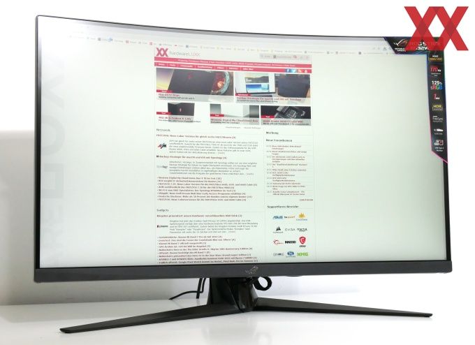 Ideal für den Produktiv-Betrieb ist der Strix XG32VC aber auch aufgrund der Krümmung nicht. Der Radius von 1.800 mm hält sich zwar noch in Grenzen, sodass der Effekt nicht so stark ausfällt, wie es bei aktuellen 1.000-mm-Geräten der Fall ist. Dennoch gilt: Es gibt keine gerade horizontale Linie auf dem Monitor. Das fällt beispielsweise bei Excel-Tabellen schnell ins Auge und macht eine perspektivische Bildkorrektur nahezu unmöglich. Im Alltag, beim Surfen, Word oder beim Beantworten von Mails fällt der Effekt weniger auf und wird von unserem Gehirn gut kompensiert.