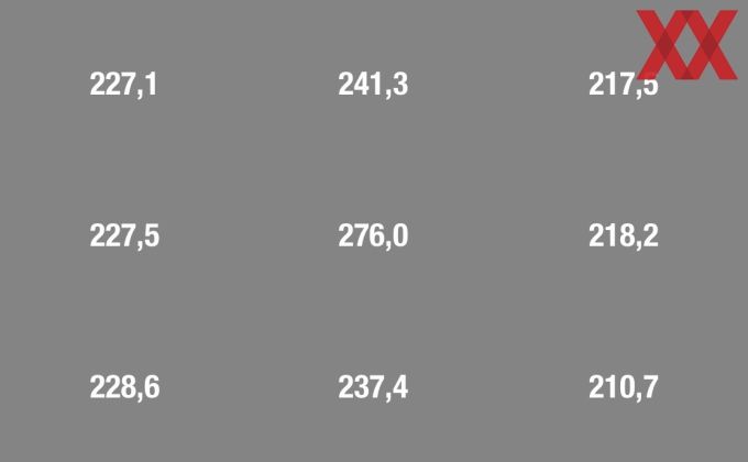 Ein Blick auf die technischen Daten hat bereits eines der Spar-Potenziale am MAG342CQPV gezeigt: Die maximale Helligkeit, die mit 250 cd/m² angegeben wird. Im mittleren Segment wird dieser Wert mit 276 cd/m² zwar übertroffen, im Mittel unserer neun Messfelder liegt die Leuchtdichte allerdings nur bei 231,6 cd/m². Entsprechend müssen auch bei der Homogenität Abstriche akzeptiert werden, denn diese liegt bei nur 76,34 %.
