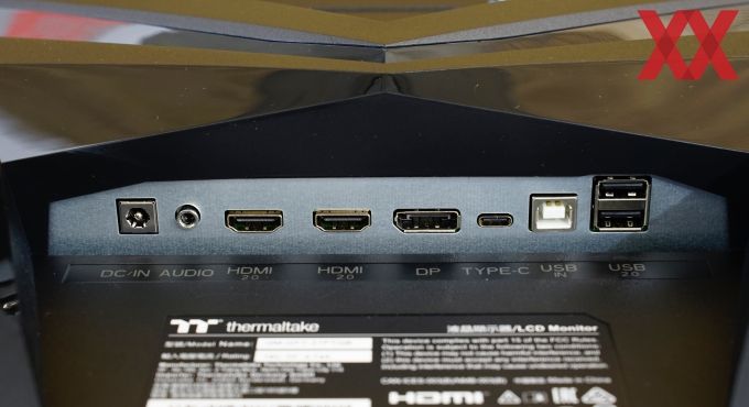 Das Anschlusspanel hat alle aktuell wichtigen Anschlüsse zu bieten. Es gibt zwei HDMI-2.0-Schnittstellen sowie DisplayPort 2.1. USB-seitig setzt Thermaltake auf zwei Typ-A- und eine Typ-C-Schnittstelle. Letztere kann lediglich 15 W bereitstellen, eine Docking-Alternative wird der 27-Zöller also nicht. Dank einer KVM-Funktion kann das Display aber mit zwei Systemen verbunden werden.