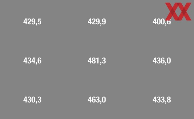 Mit einer maximalen Leuchtkraft von 481,3 cd/m² im zentralen Segment kann der 27-Zöller mit einer mehr als ausreichend hohen Helligkeit für den SDR-Betrieb aufwarten, auch dann, wenn der Monitor in hellen Umgebungen eingesetzt wird. Im Mittel kommen wir auf einen Wert von 437,7 cd/m², was noch immer hell genug ist, aber bereits zeigt, dass es mit der Homogenität nicht ganz so gut aussieht. Zwischen dem hellsten und dem dunkelsten Sektor liegen 80,7 cd/m², was zu einer Homogenität von 83,23 % führt. Gerade bei großen homogenen Flächen können Unterschiede so auffallen.