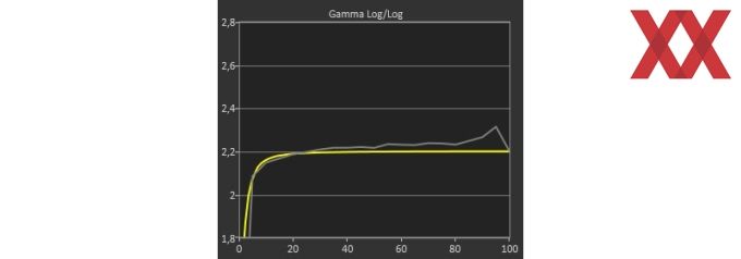 Das Gamma liegt ebenfalls auf einem sehr guten Niveau. Wir ermitteln einen Wert von 2,214. Es liegt also nur minimal über dem Soll, was auch in der Grafik zu erkennen ist.