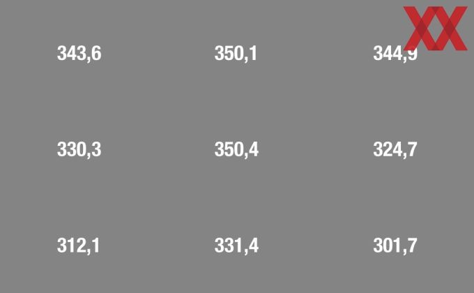 Die Homogenität liegt mit 86,1 % auf keinem allzu berauschenden Niveau. Der Unterschied zwischen dem hellsten und dunkelsten Sektor beträgt 48,7 cd/m².