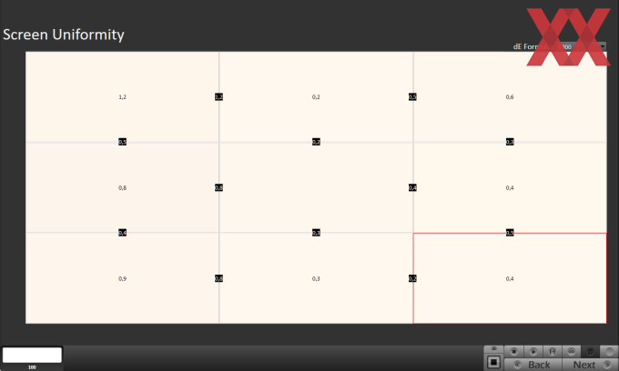Die Farbstabilität über das gesamte Panel befindet sich auf einem exzellenten Niveau. Die maximale Abweichung sehen wir im oberen linken Quadranten mit einem DeltaE von 1,2. Farbunterschiede sind mit dem bloßen Auge so keinesfalls zu erkennen.